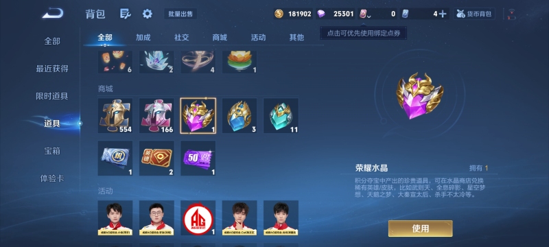 背包里一颗荣耀水晶,花合斗,十传说,至尊宝