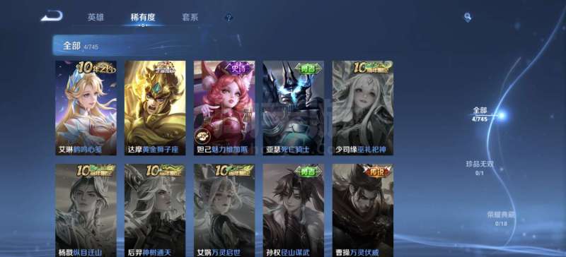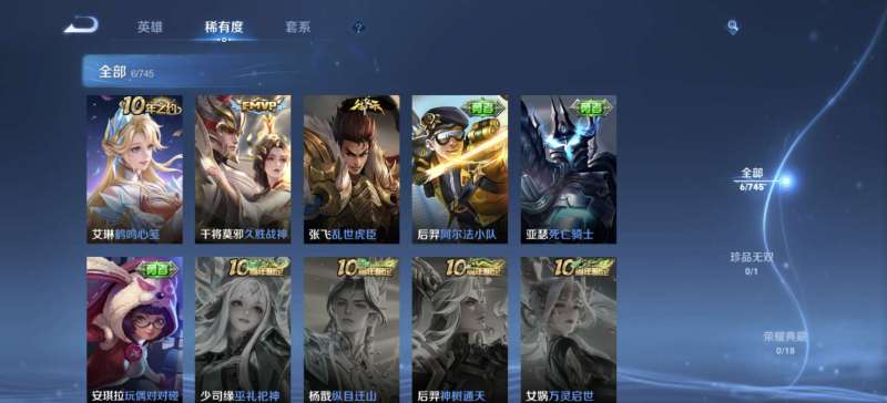 [王者荣耀]V104典藏4无双95传说222史诗605皮肤永恒钻石I