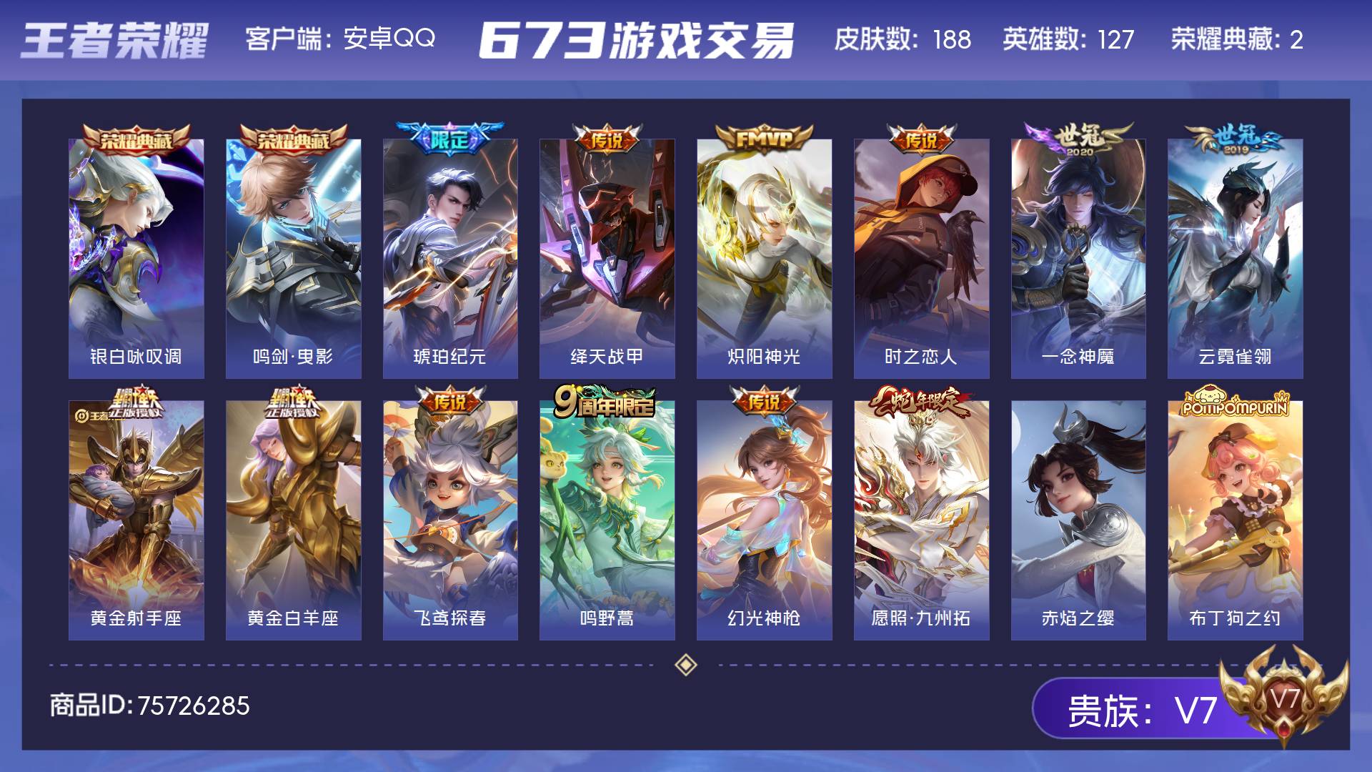 安卓QQ-皮肤188 英雄127 至尊星耀 荣耀典藏2 传说12 其他皮肤180