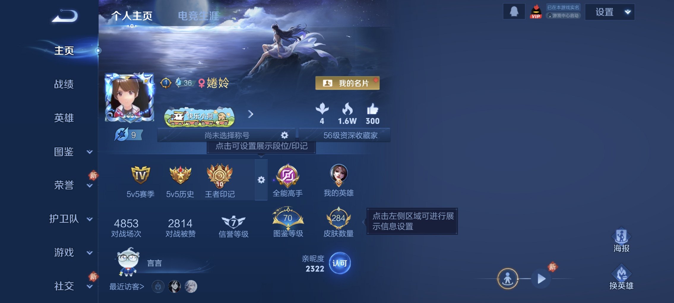 可二次 30传说284皮肤2水晶1无双1珍品2星元