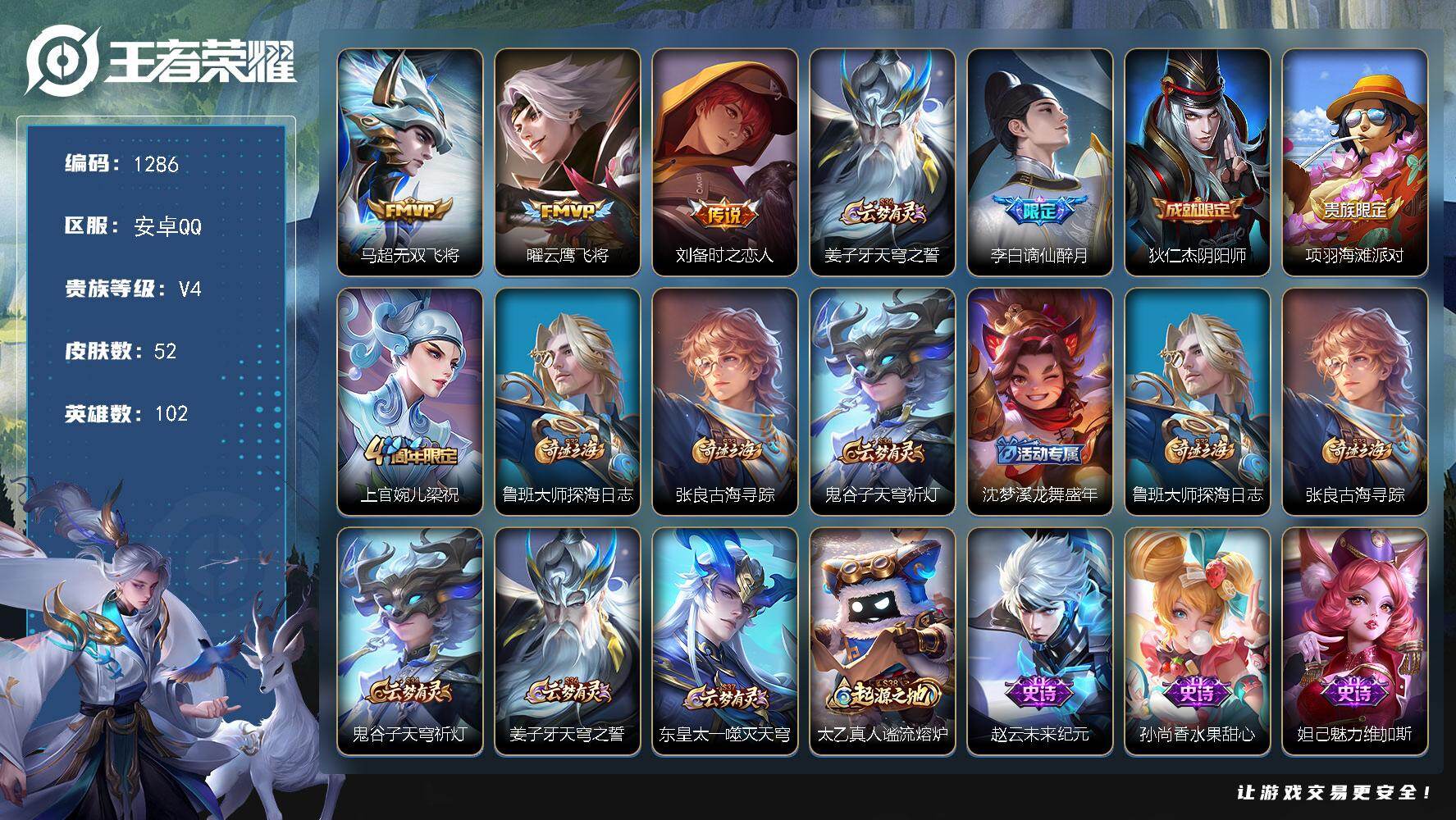 2341573 王者荣耀账号 安卓Q-V4-尊贵铂金II段位-102英雄-