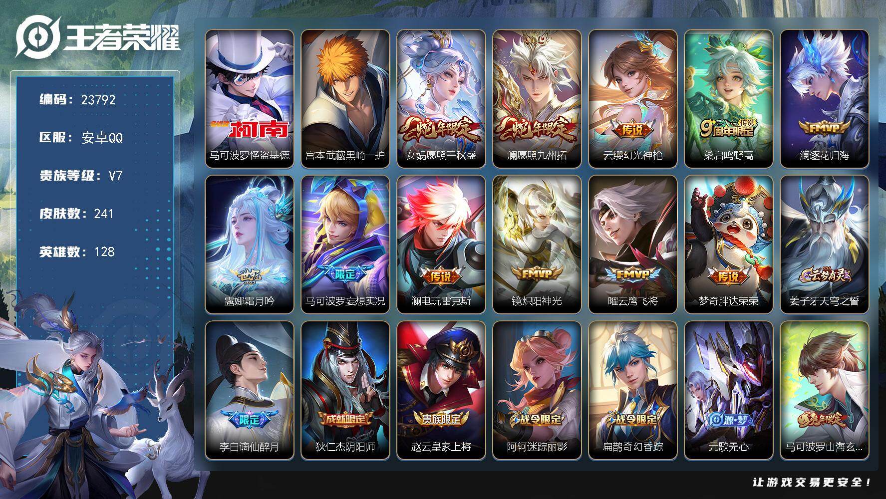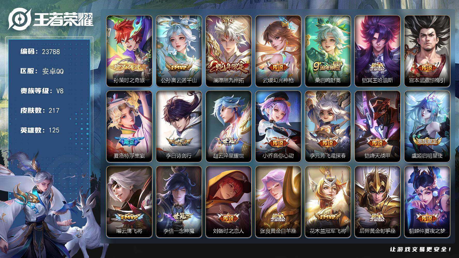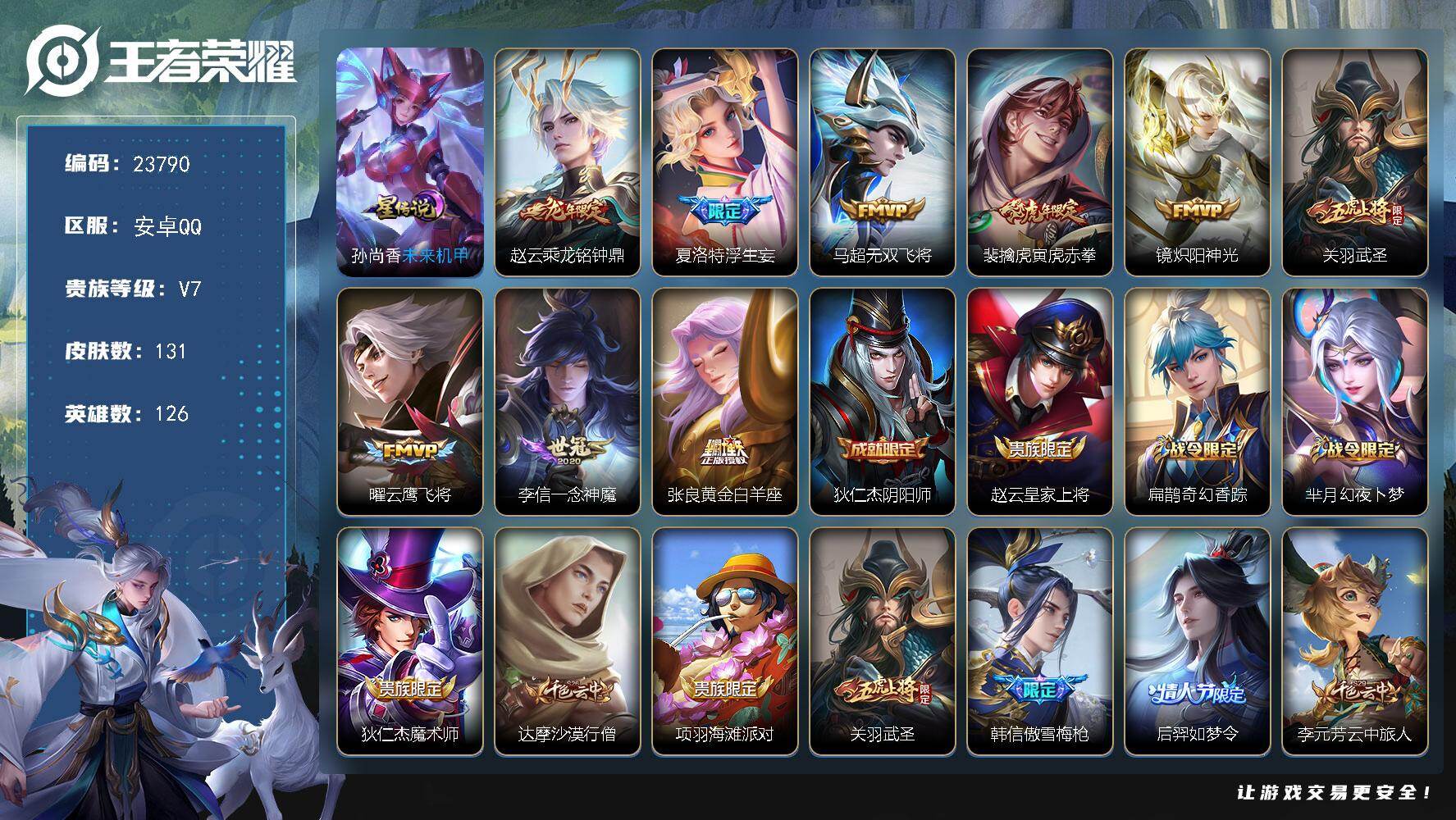 2341562 水晶218抽 安卓Q-V7-至尊星耀IV段位-126英雄-
