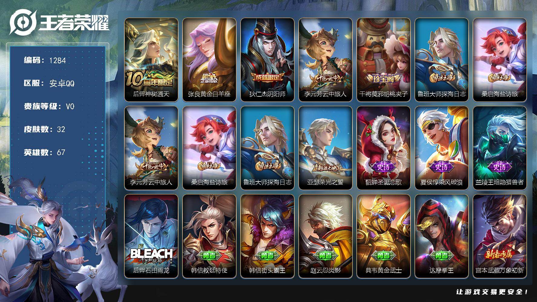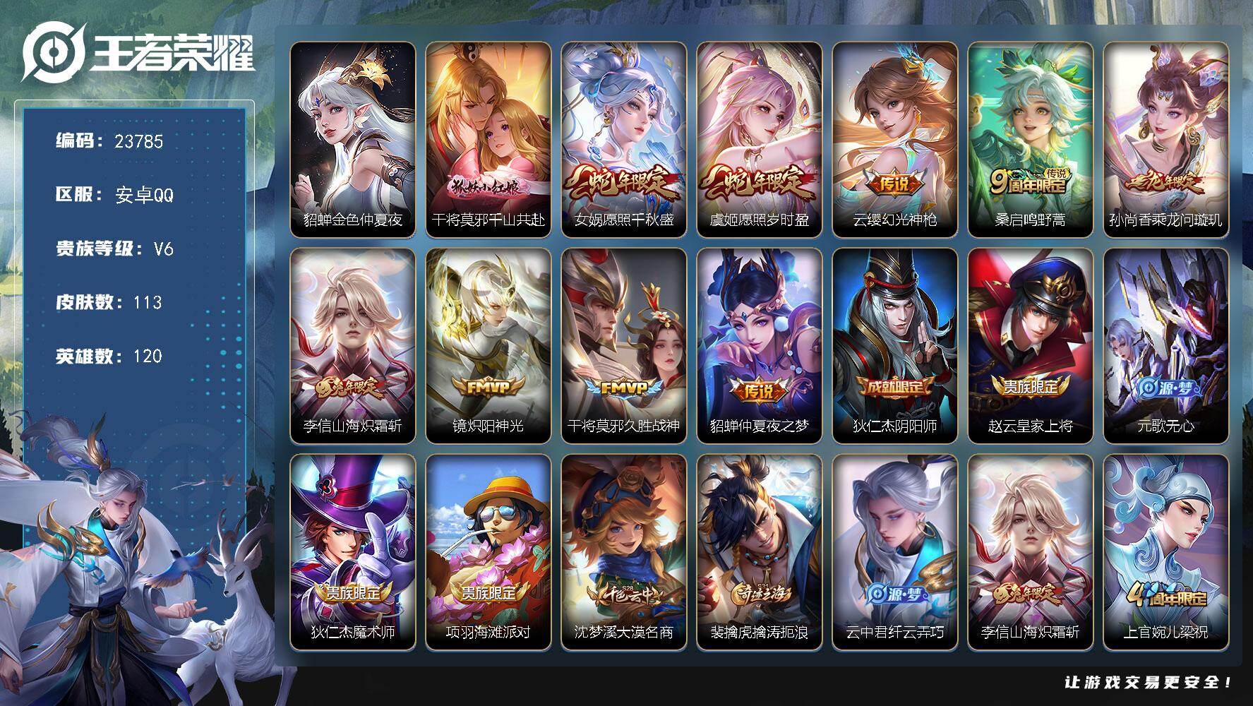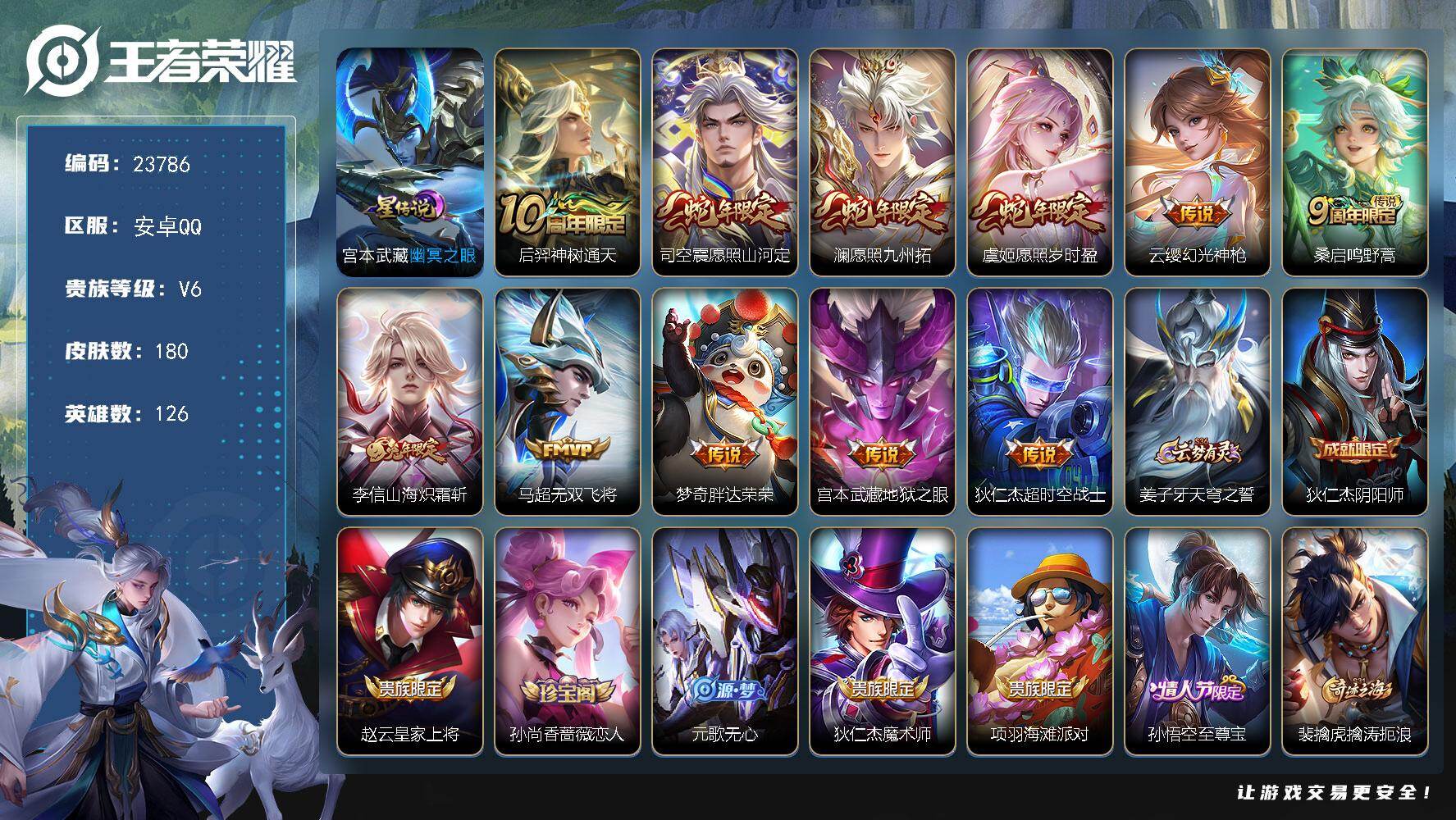 2341415 纯女号 安卓Q-V5-最强王者段位-123英雄-172皮肤