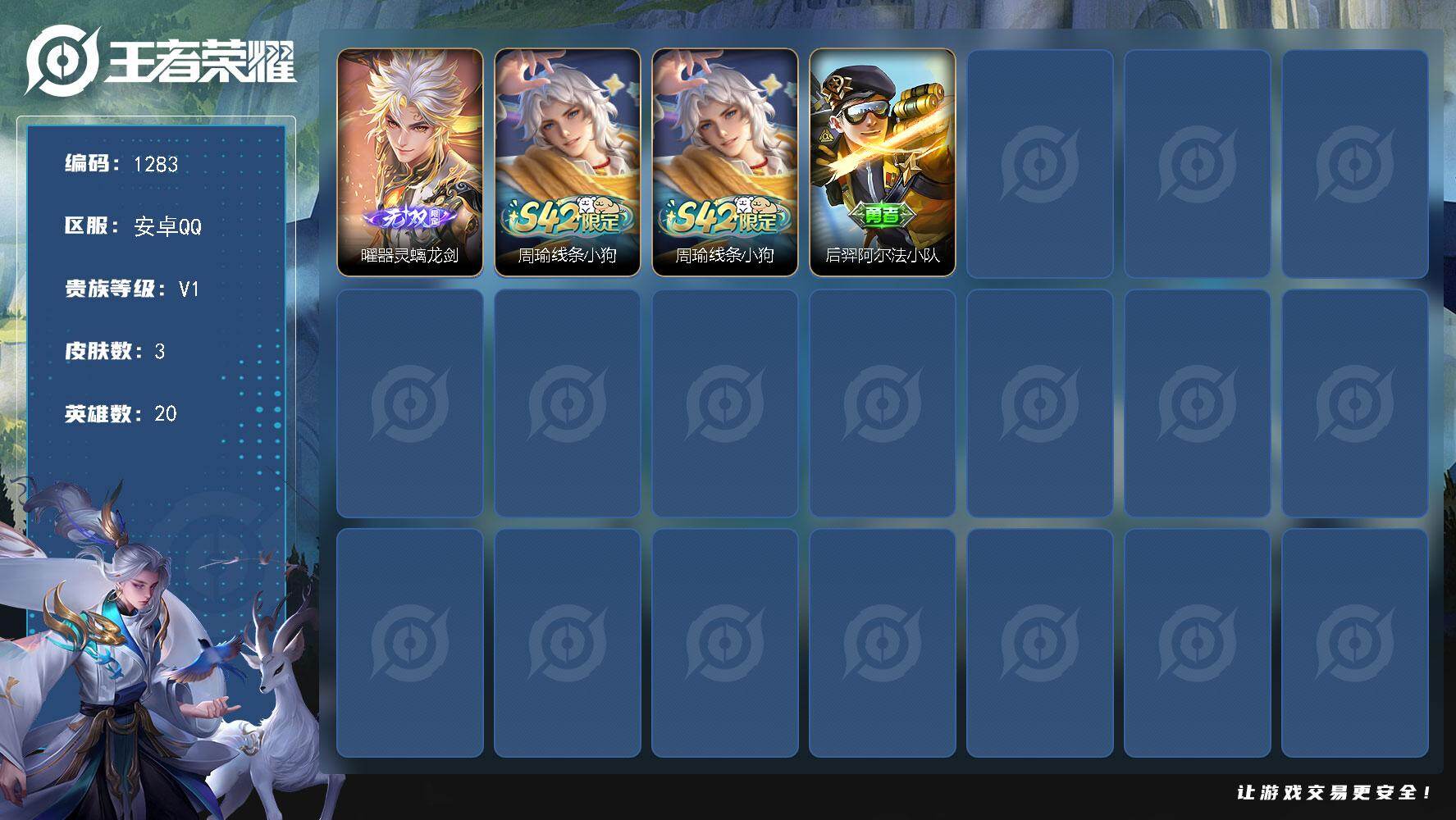 2341501 王者荣耀账号 安卓Q-V1-荣耀黄金II段位-20英雄-3