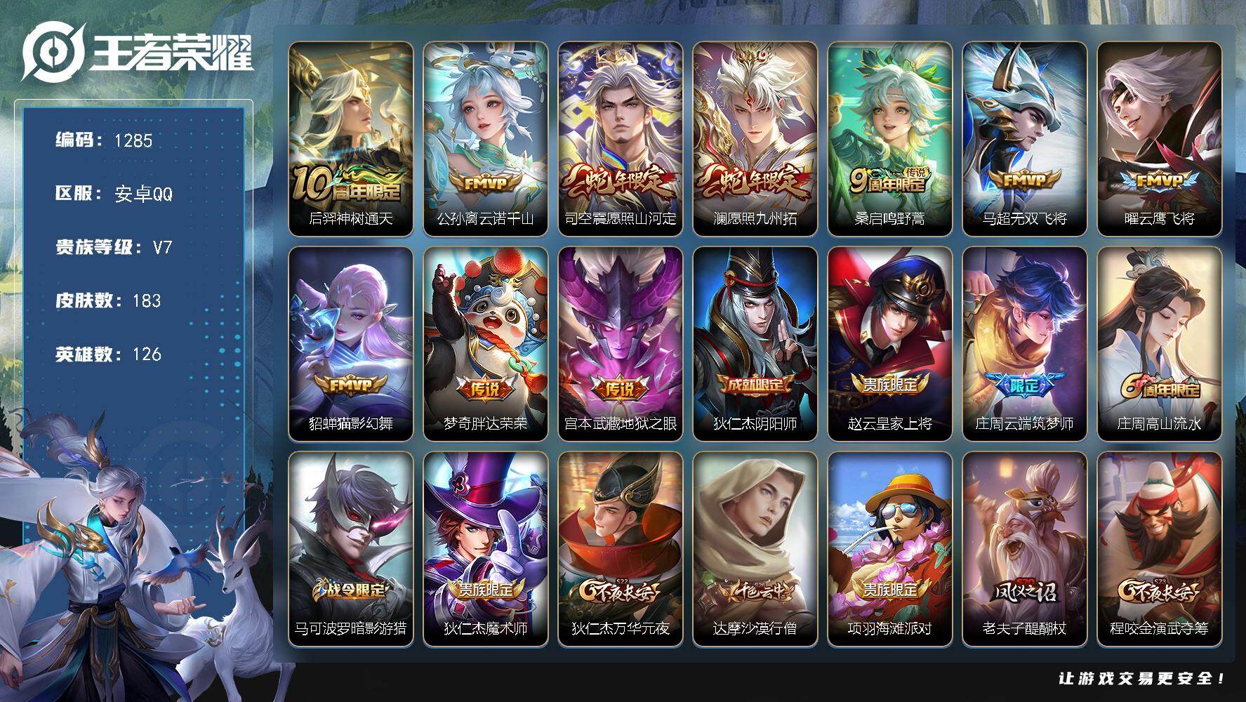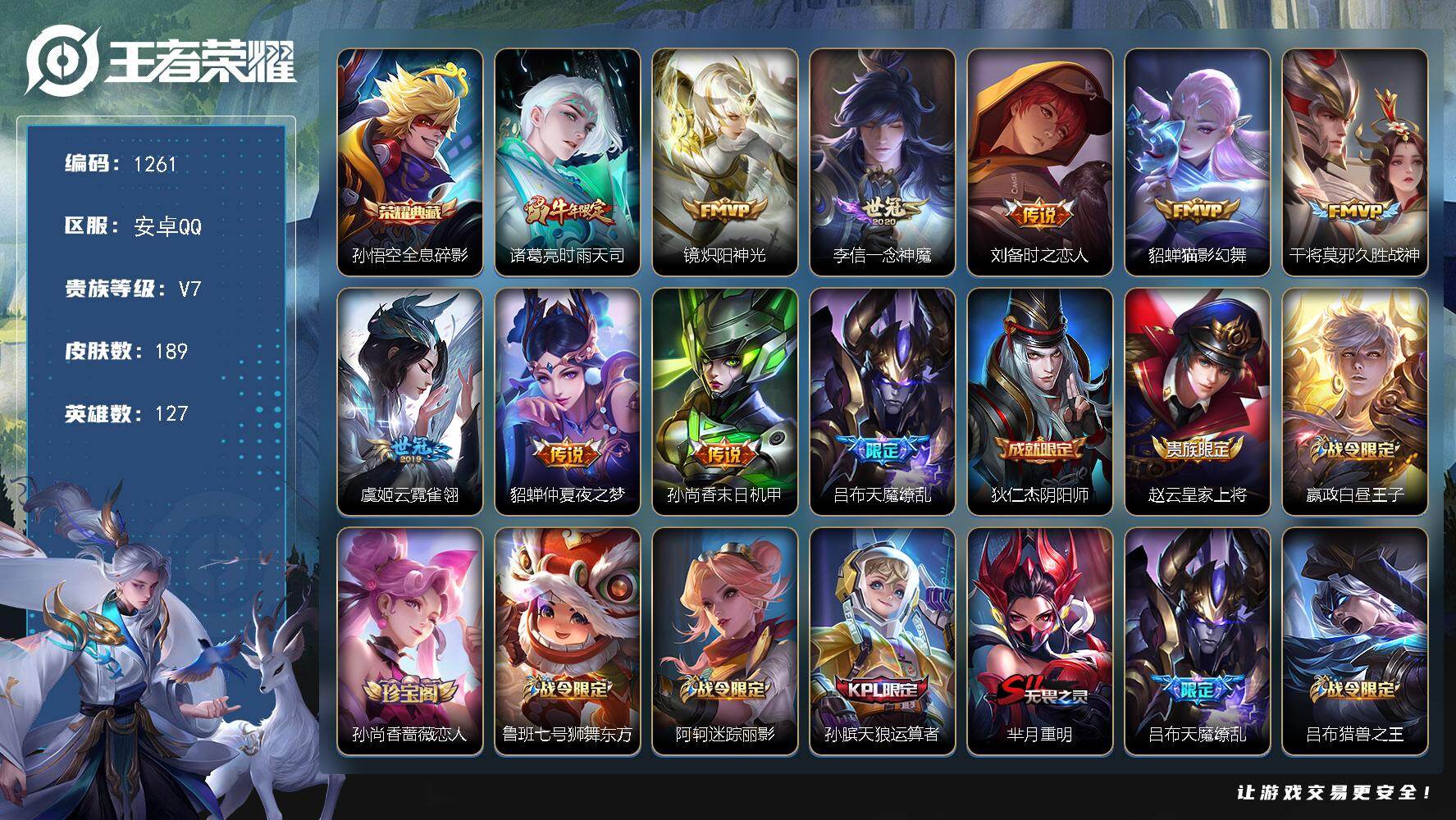 2319285 王者荣耀账号 安卓Q-V7-永恒钻石I段位-127英雄-1