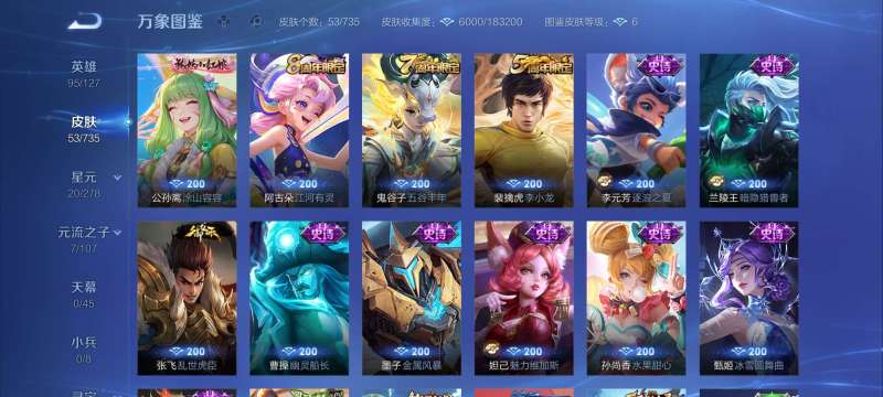 皮肤17 英雄37 无双王者 其他皮肤9-不想玩了 新开的号