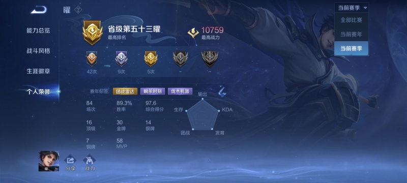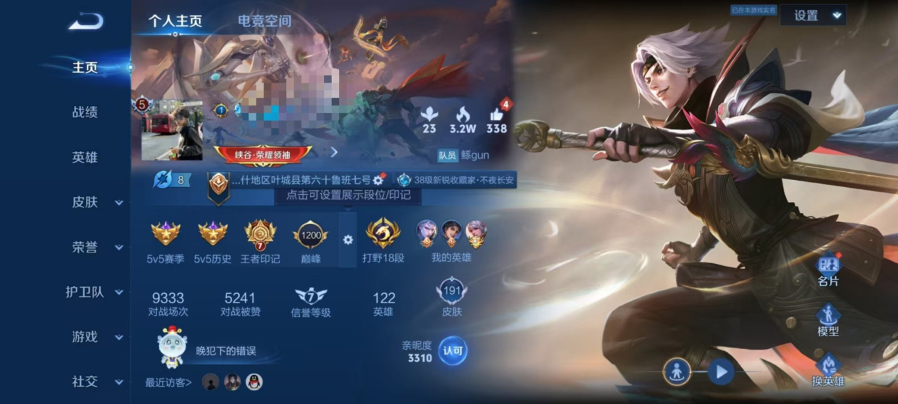 实名: 可修改 贵族等级: V5 英雄数: 105 皮肤数: 71 传说皮: