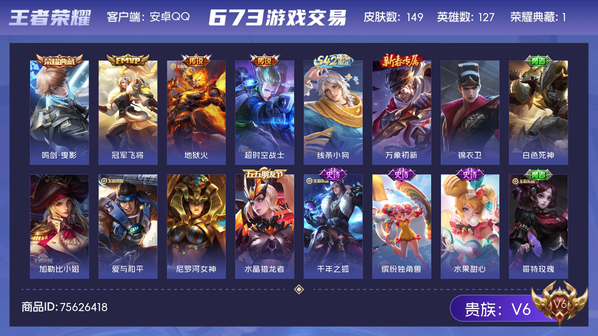 v6 英雄127皮肤148 传说9 星传说1 -148皮肤-127英雄