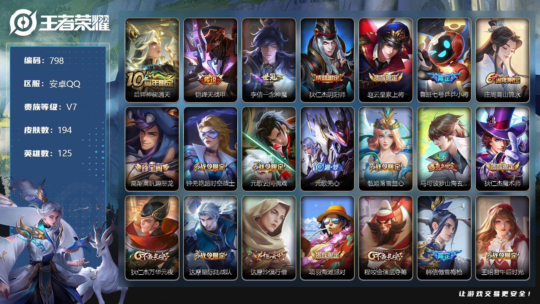 安卓QQ-2传说-164皮肤-125英雄-至尊星耀