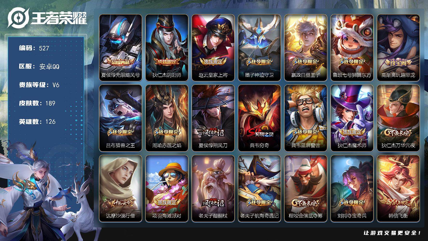安卓Q-V5-至尊星耀II段位-126英雄-145皮肤-1珍品传说-6传说-3