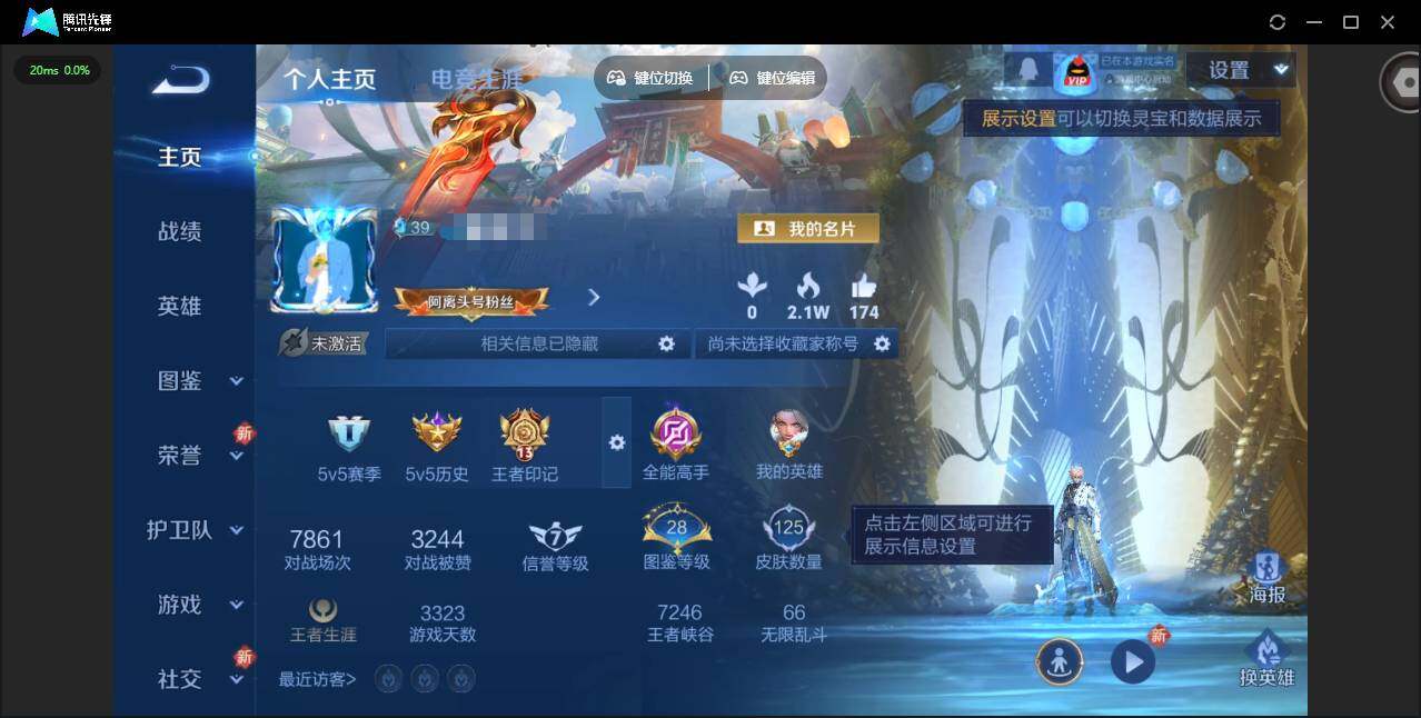实名: 可修改 贵族等级: V6 英雄数: 117 皮肤数: 125 荣耀水晶