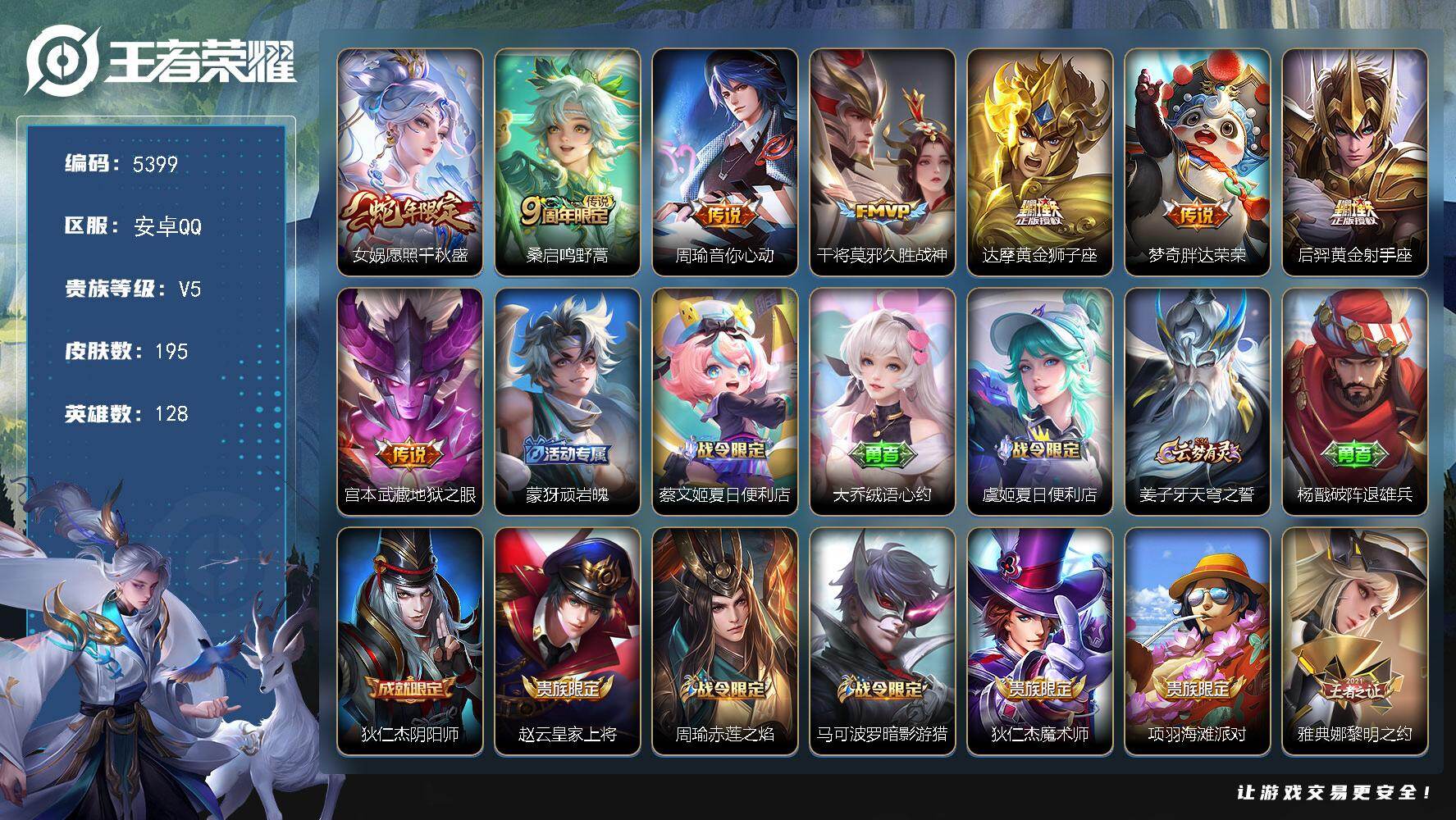 安卓Q-V5-至尊星耀IV段位-128英雄-195皮肤-8传说-53史诗【英