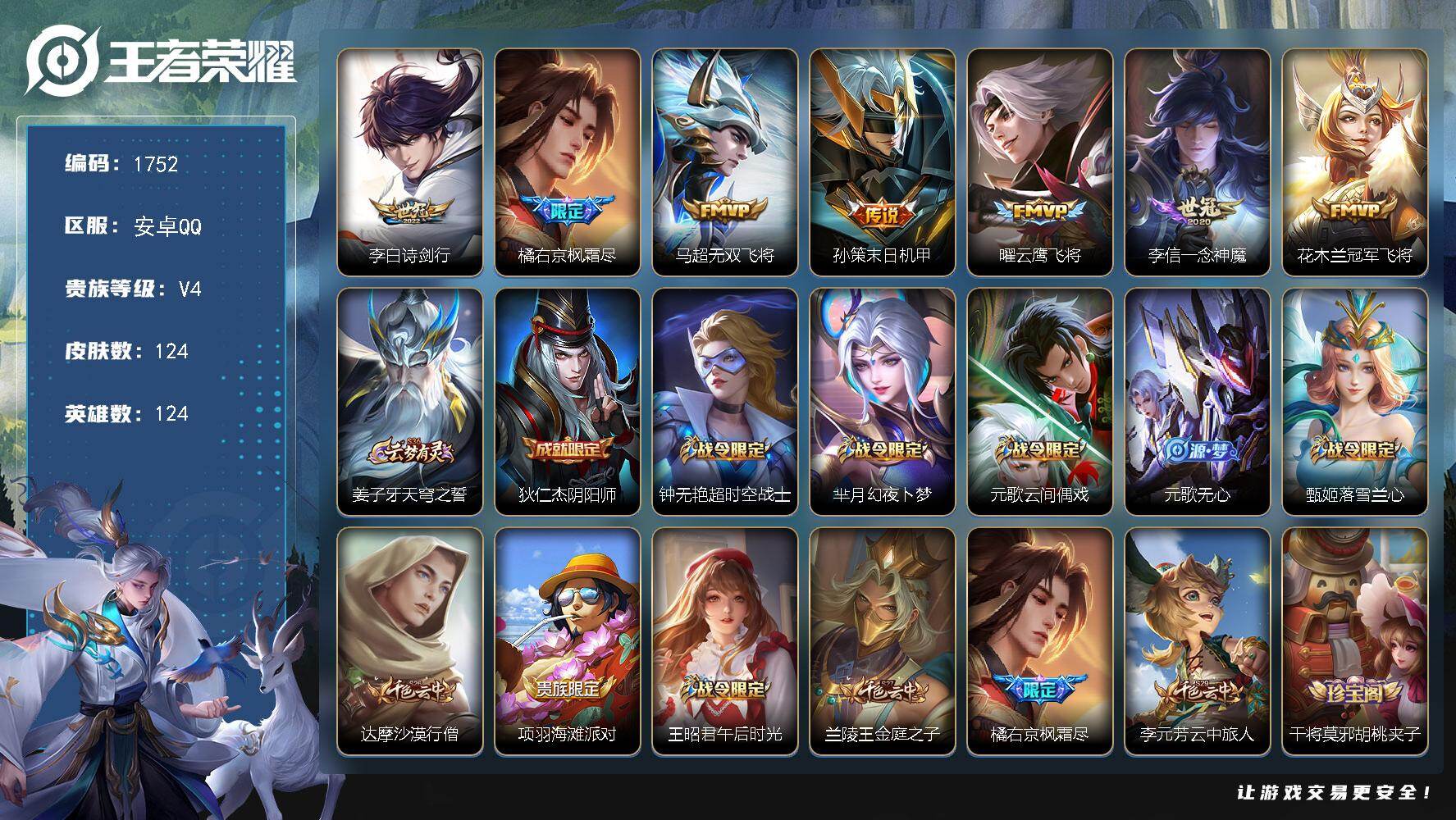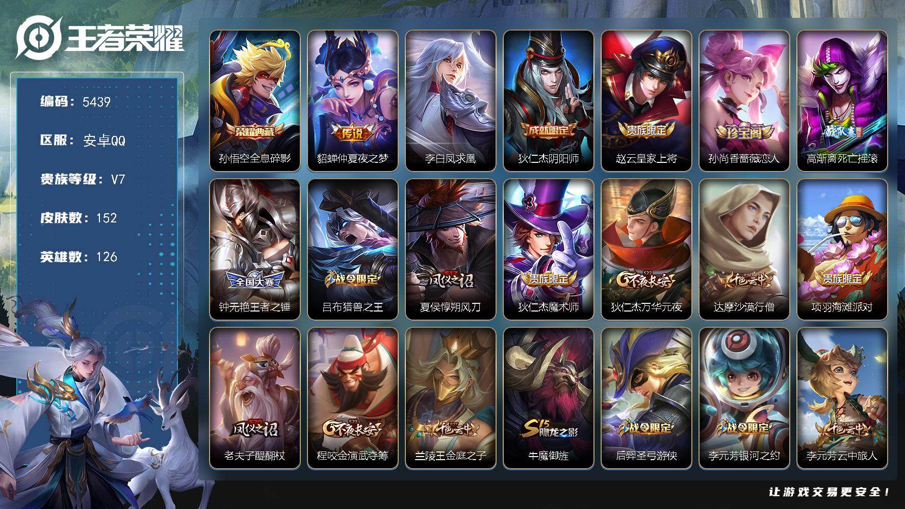 【商品标题】:820672安卓Q-V6-至尊星耀II段位-120英雄-151皮