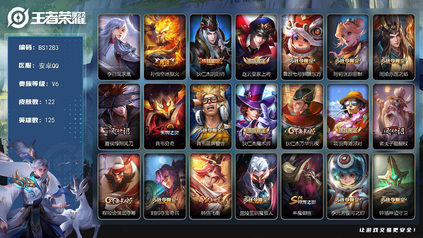 安卓Q-V0-至尊星耀V段位-125英雄-122皮肤-2传说-25史诗【传说皮