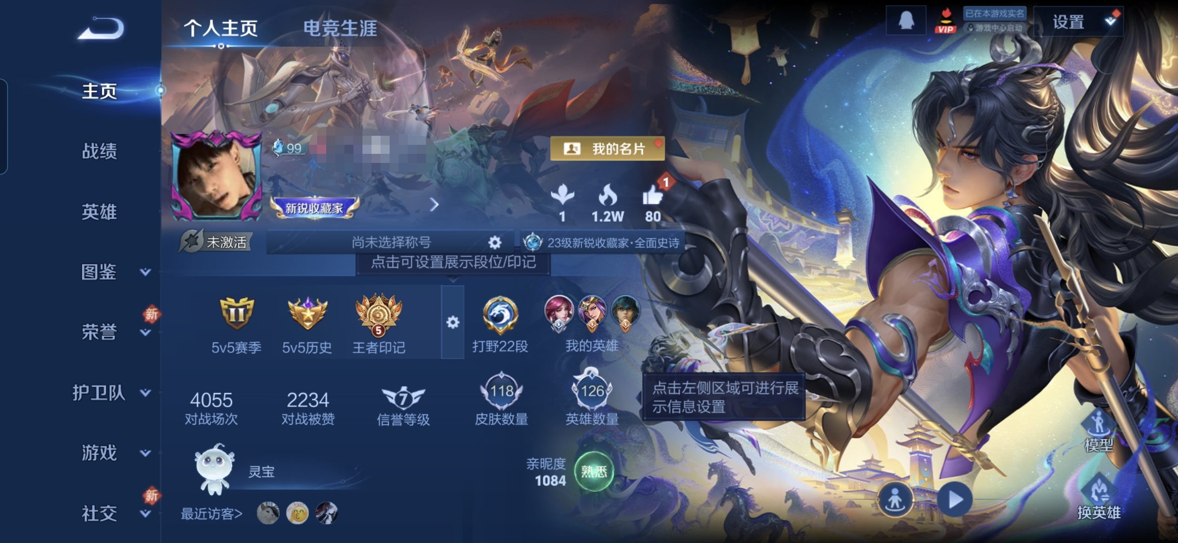 实名: 可修改 贵族等级: V6 英雄数: 121 皮肤数: 113 传说皮: