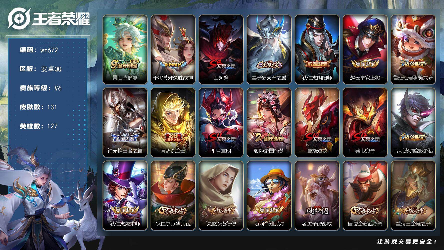 安卓Q-V6-最强王者段位-127英雄-131皮肤-2传说-21史诗【传说皮