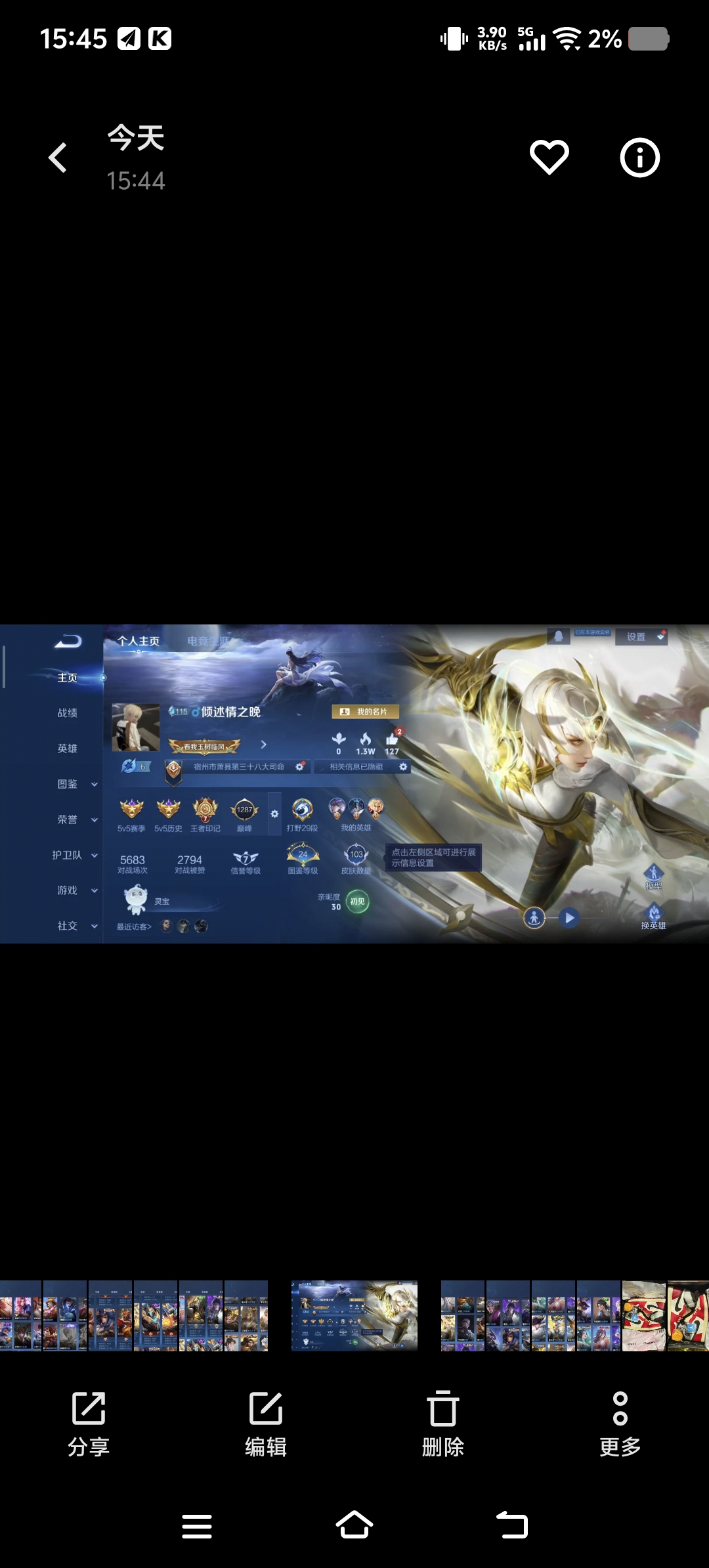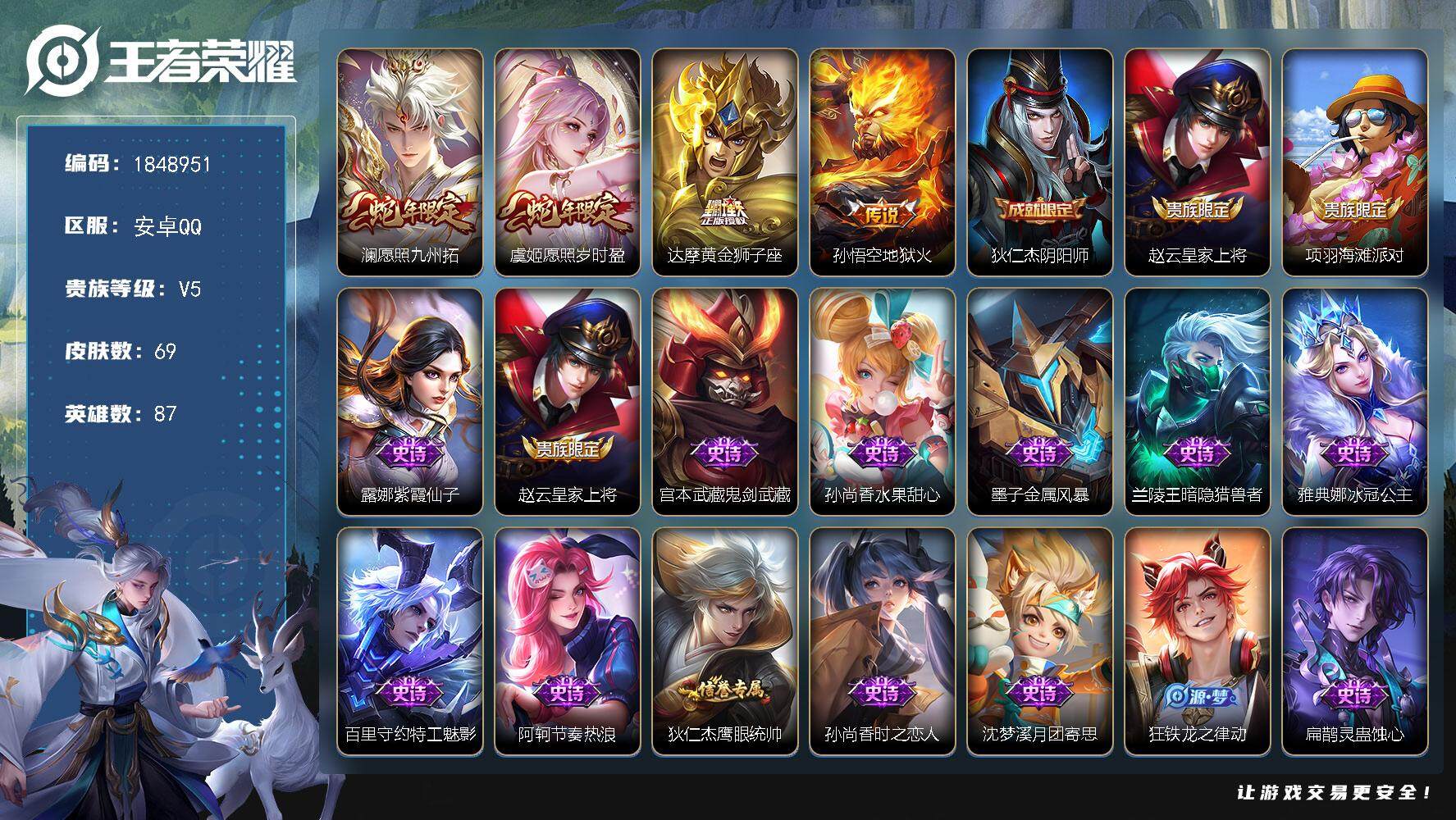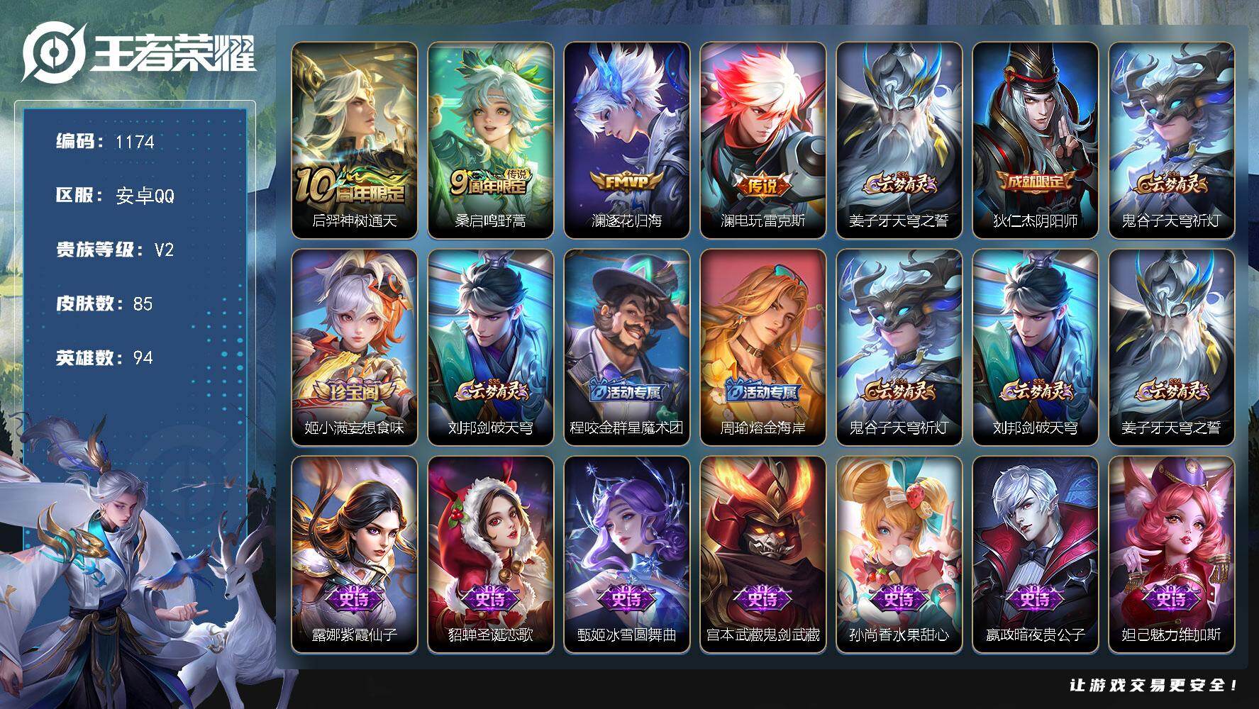 安卓QQ-2传说-94皮肤-125英雄-传奇-王者荣耀。自己的号。