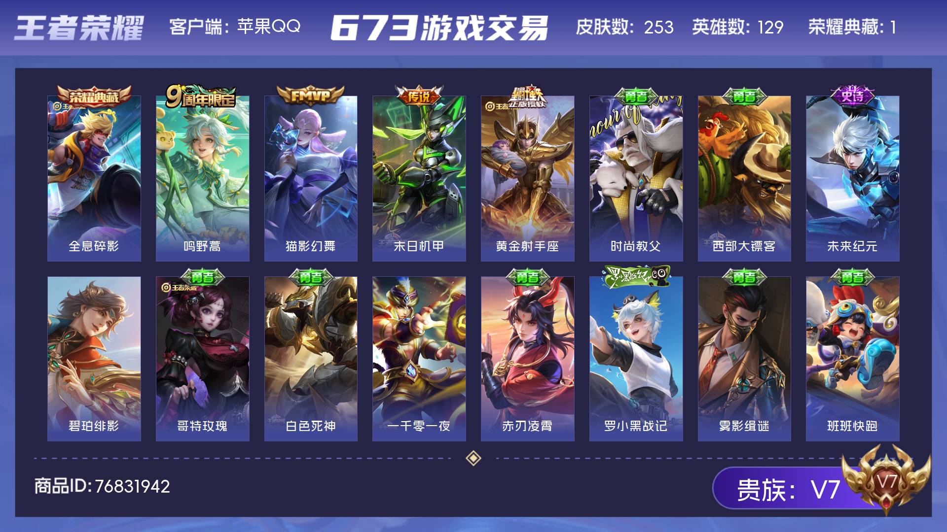 V7 皮肤253 英雄129 荣耀黄金 荣耀典藏1 传说4