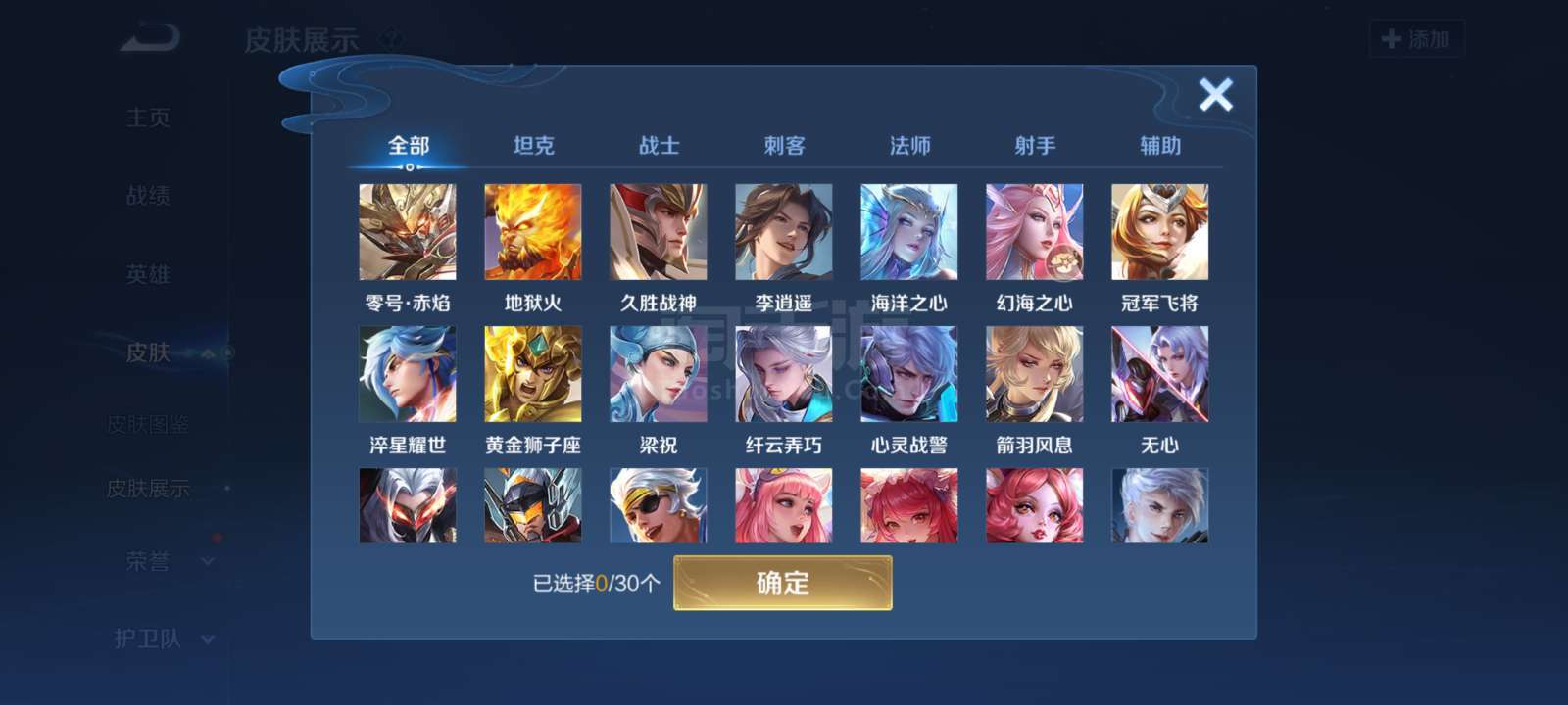可二次【7传说皮肤】地狱火 孙悟空,地狱之眼 宫本武藏,黄金射手座 后羿,黄金狮子座 达摩,绛天战甲
