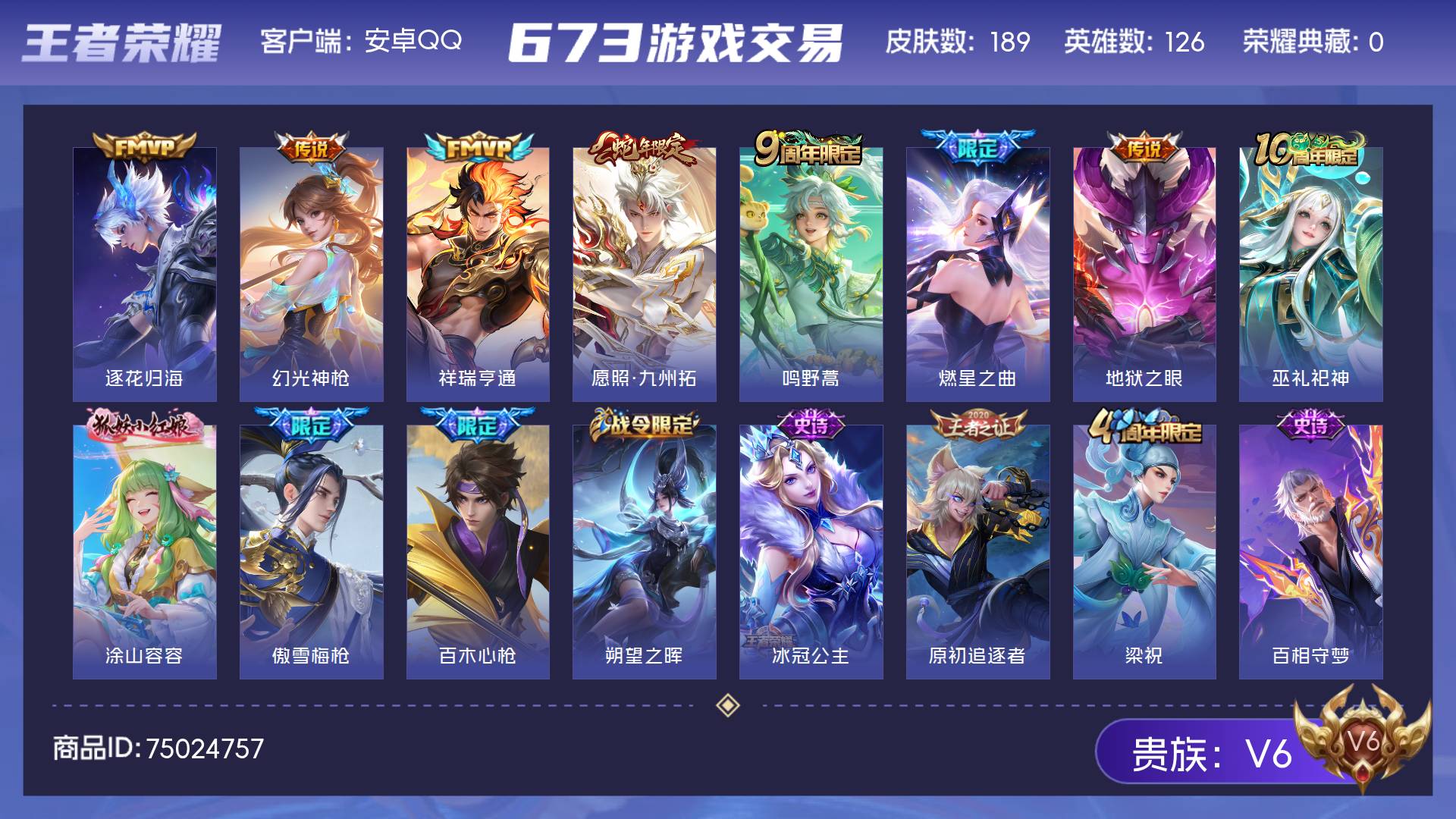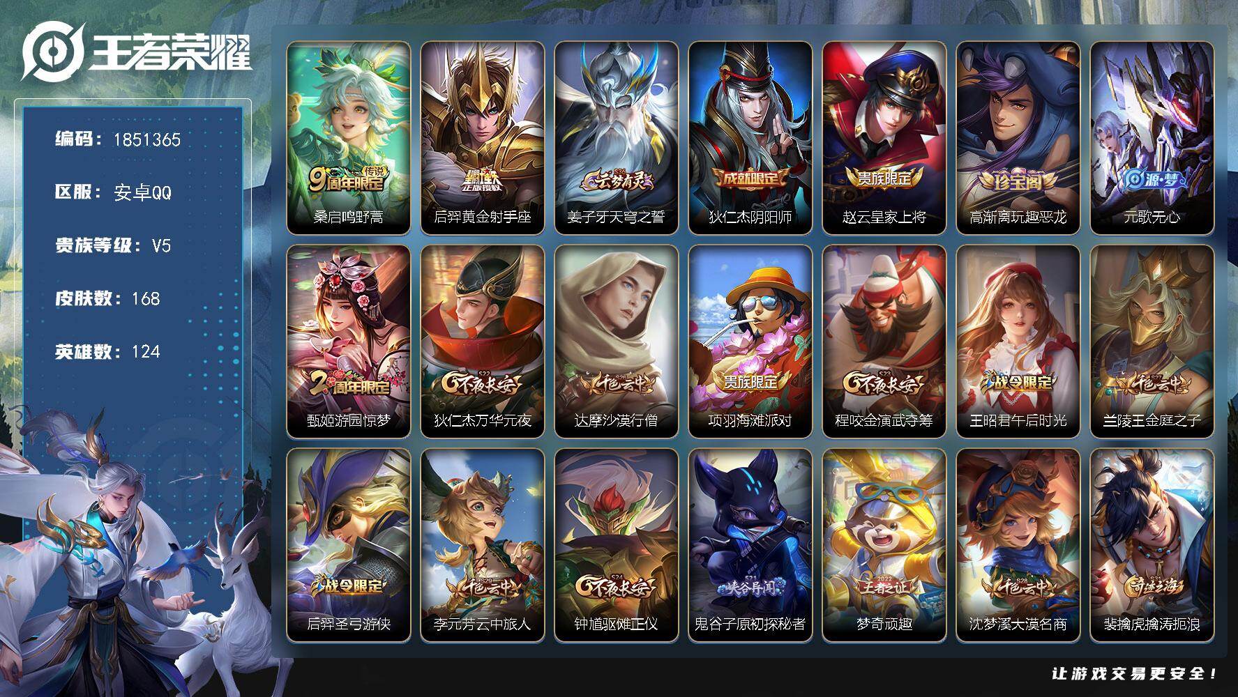 安卓QQ-128英雄-尊贵铂金-安卓QQ-128英雄-尊贵铂金-极品数据号省数字标李信省数字标木兰省50亚连三张改名卡和170个皮肤碎片