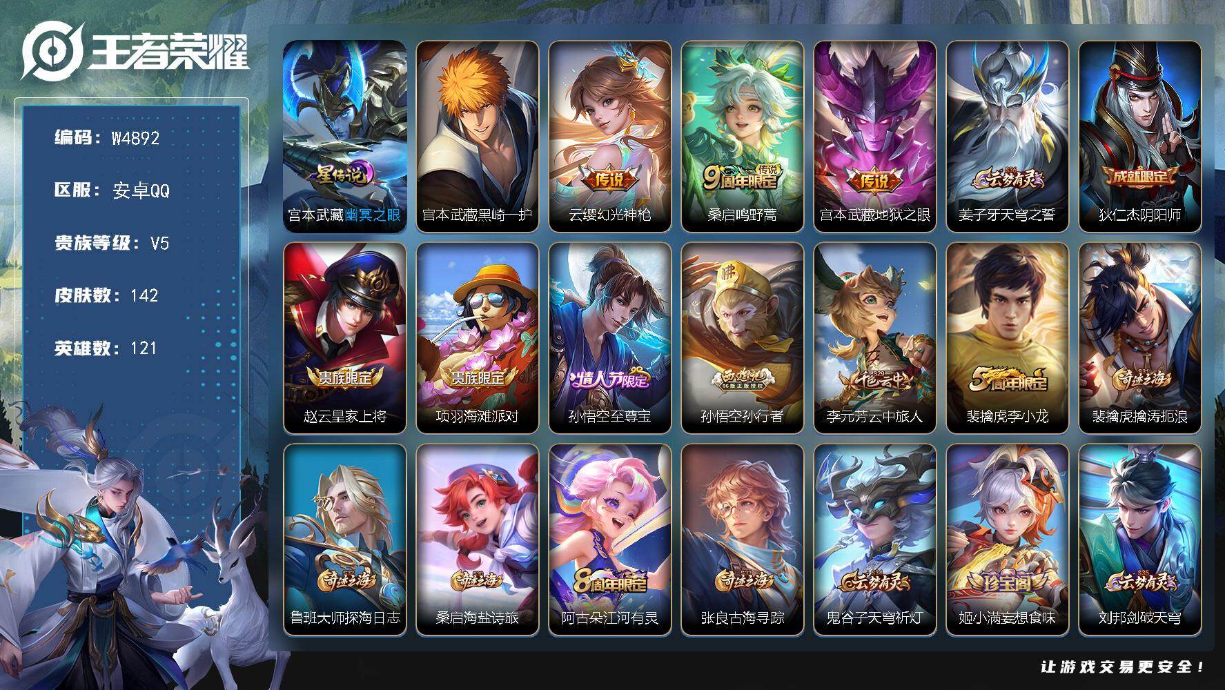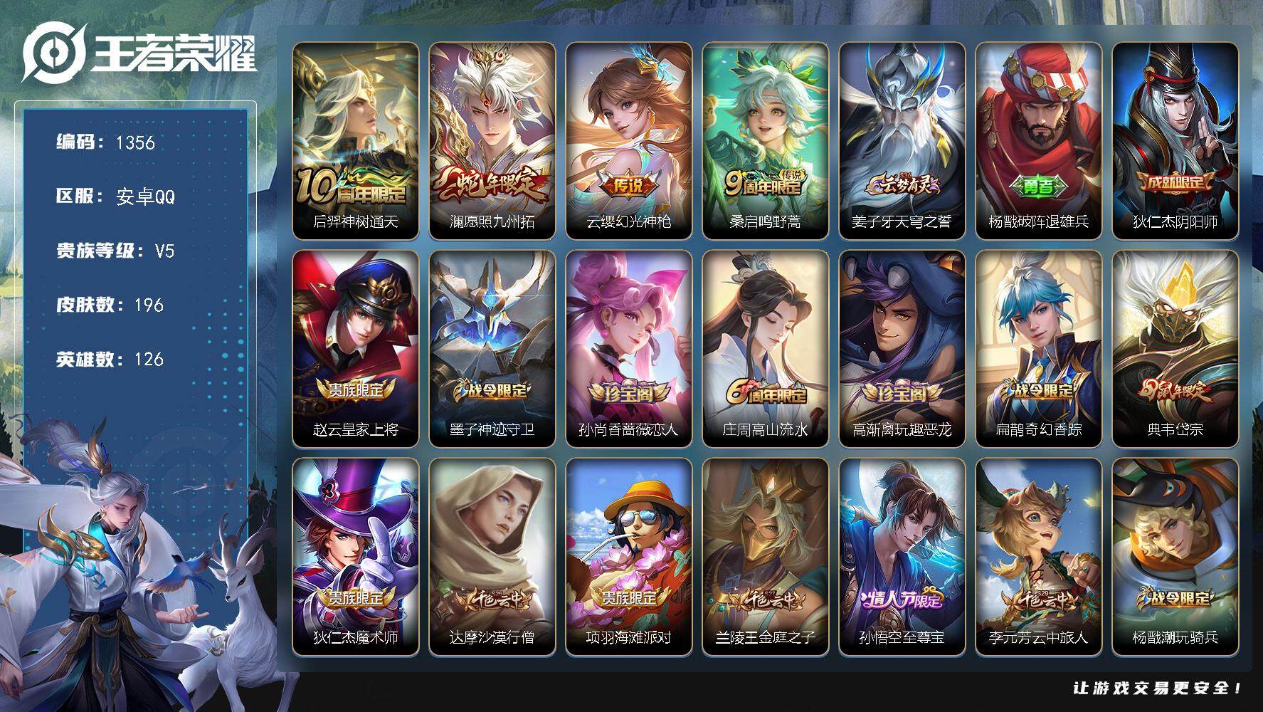 【至尊宝 172皮肤1星元5传说可秒换绑】安卓QQ-124