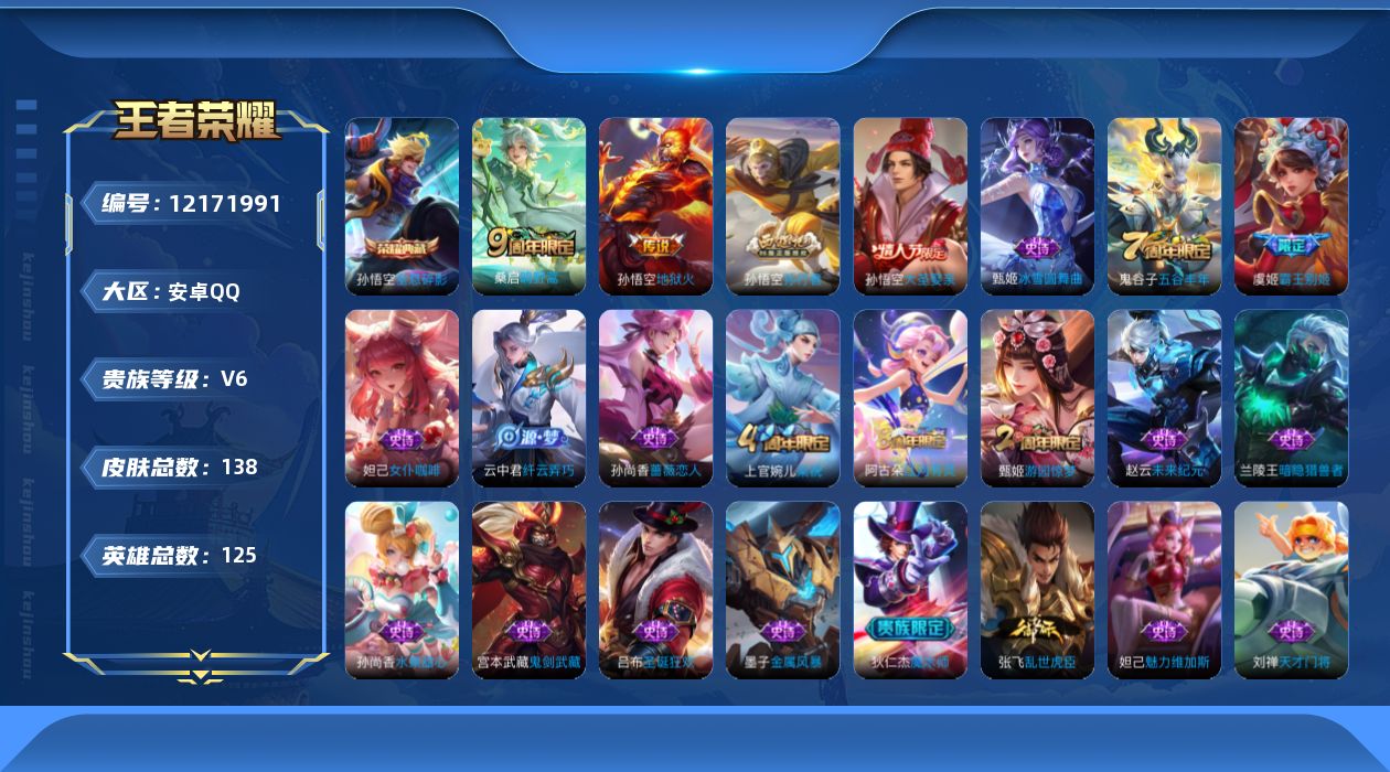 安卓QQ-5传说-117皮肤-123英雄-无双王者