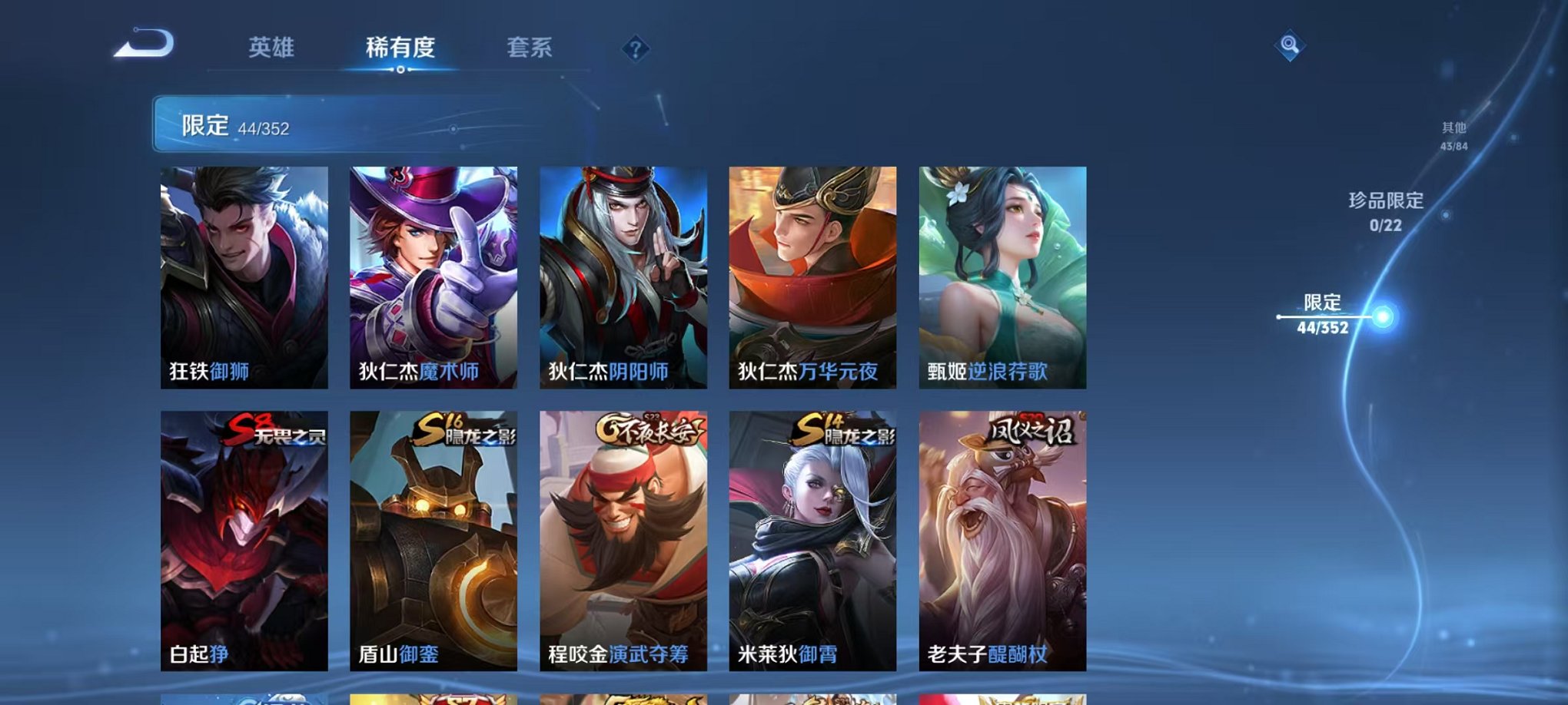 皮肤71 英雄84 荣耀黄金 传说7