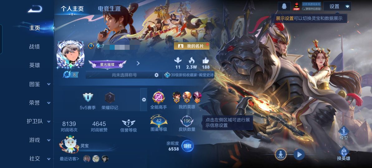 实名: 可修改 贵族等级: V6 英雄数: 118 皮肤数: 140 传说皮:
