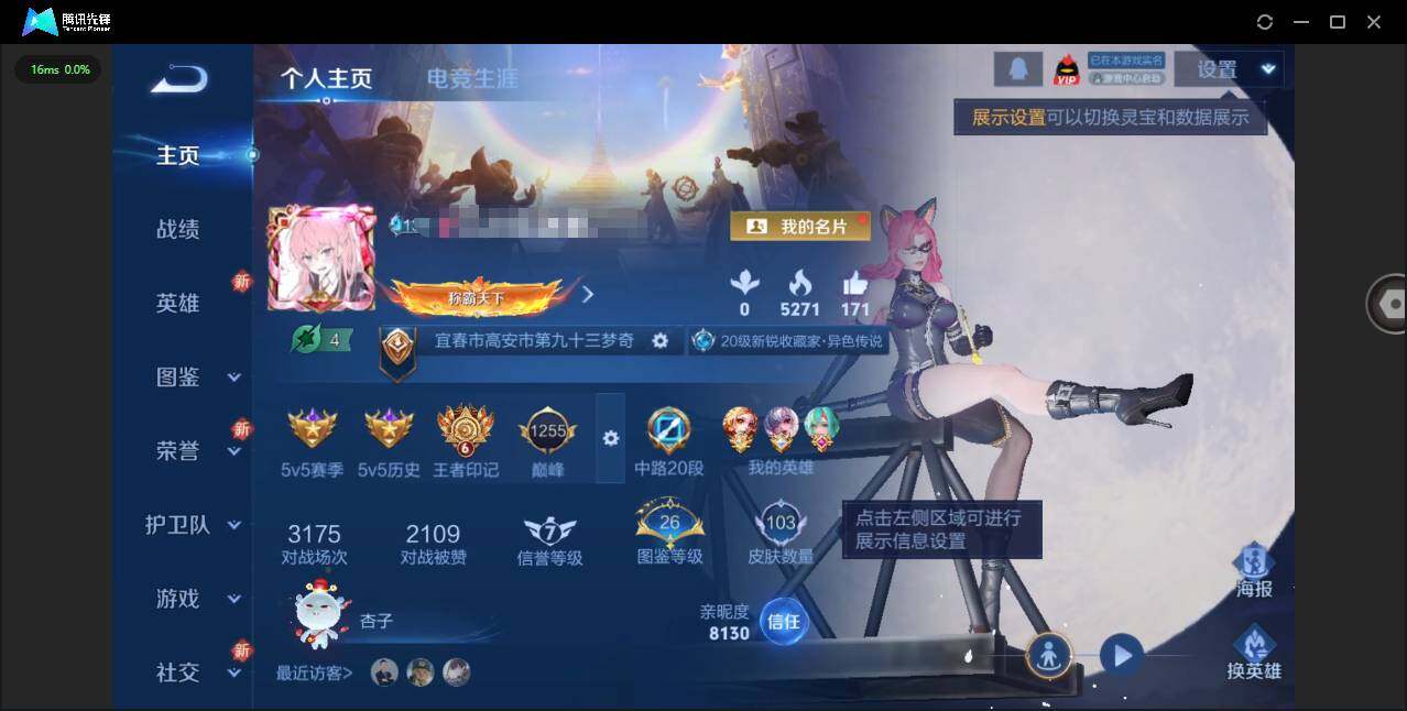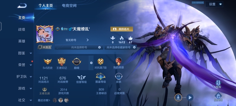 实名: 可修改 贵族等级: V6 英雄数: 125 皮肤数: 150 星传说: