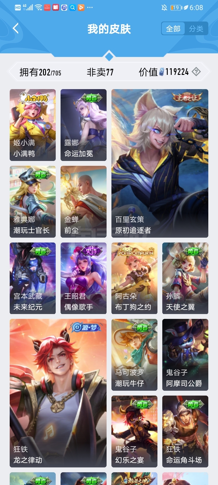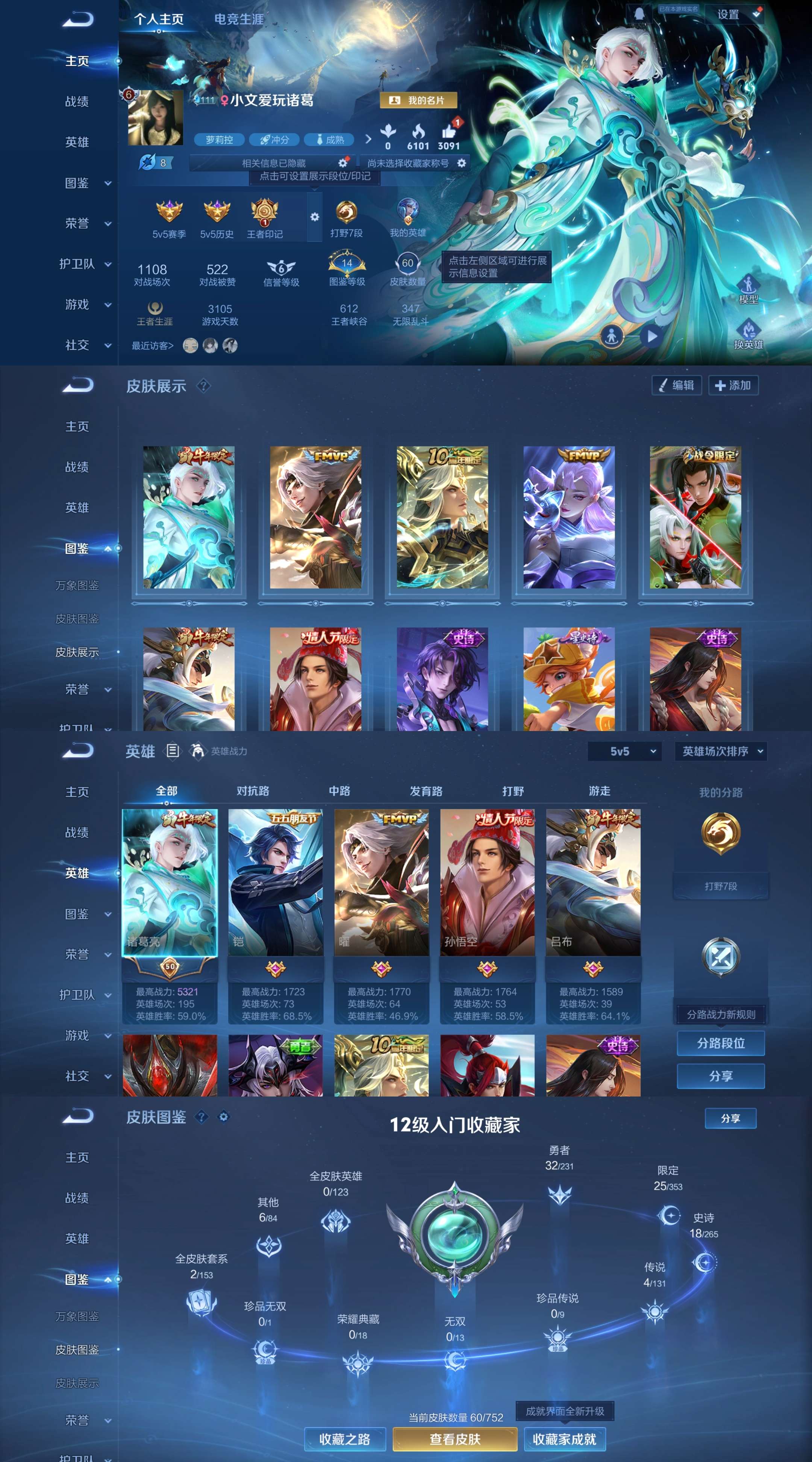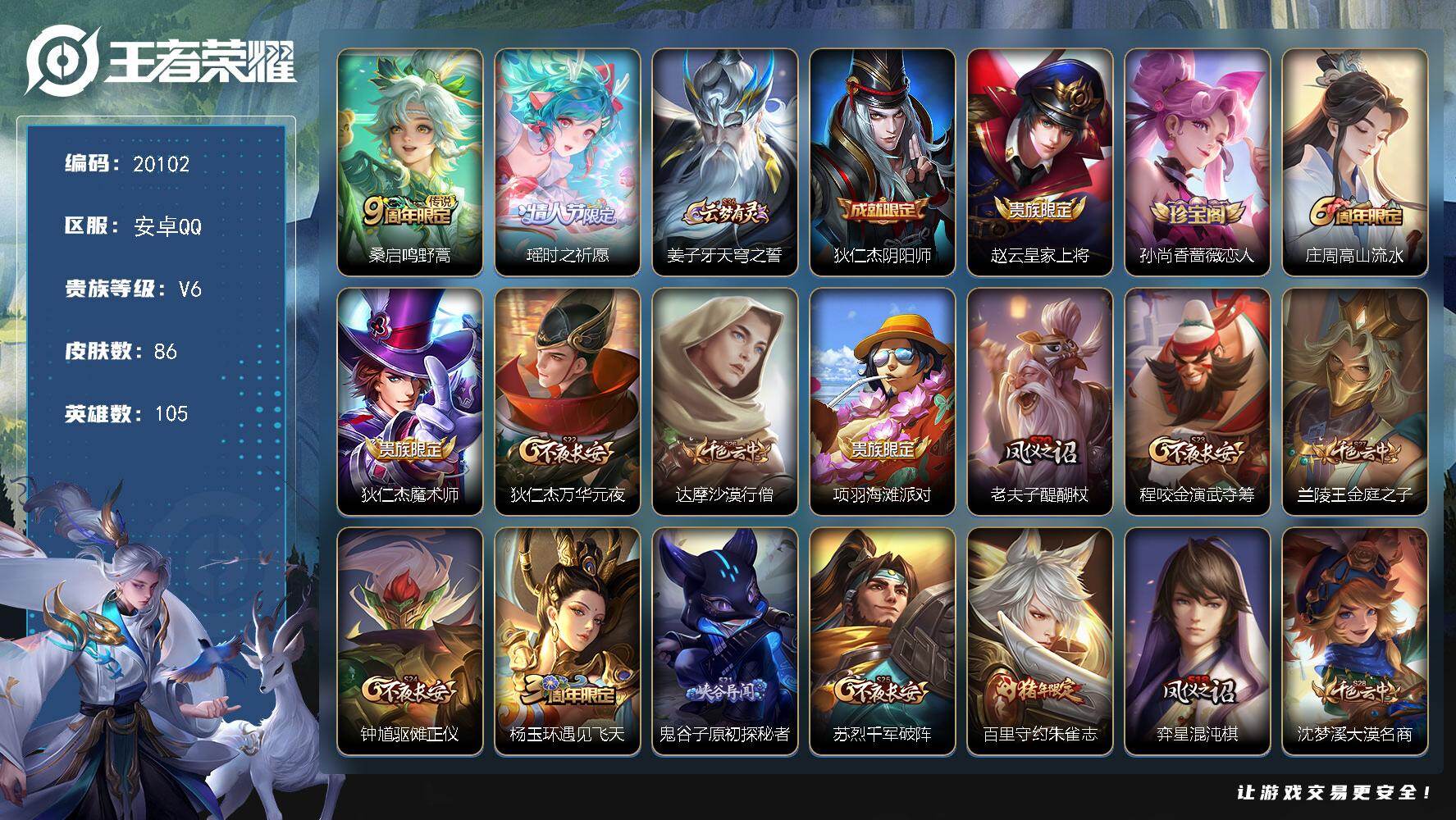 实名: 可修改 贵族等级: V4 英雄数: 114 皮肤数: 69 传说皮: