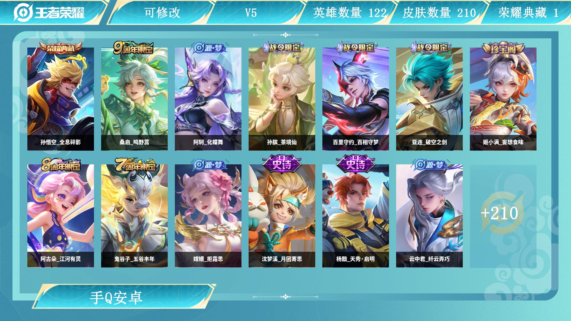 【W4923】安卓QQ-无二次-贵6-125英雄-116皮肤-1典藏-3传说-