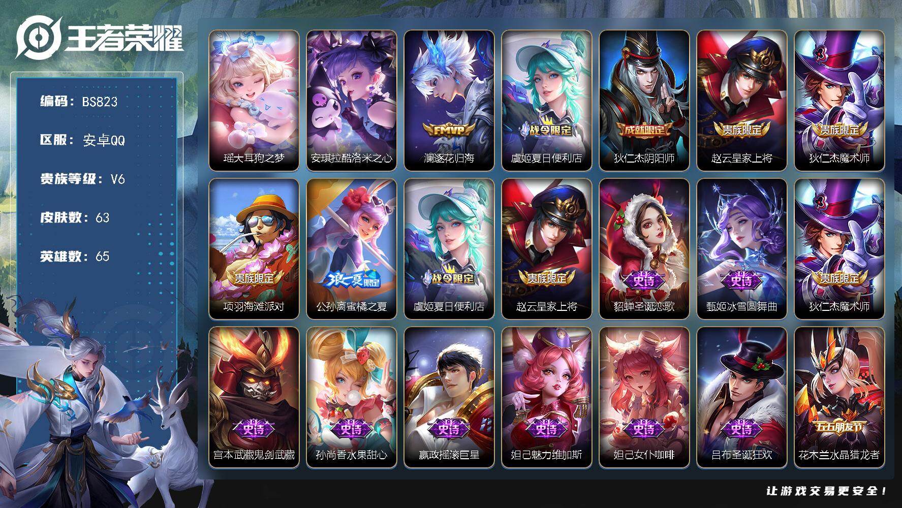 安卓Q 精品低价账号!【大耳狗之梦,库洛米之心】! V6-63皮肤-2珍品