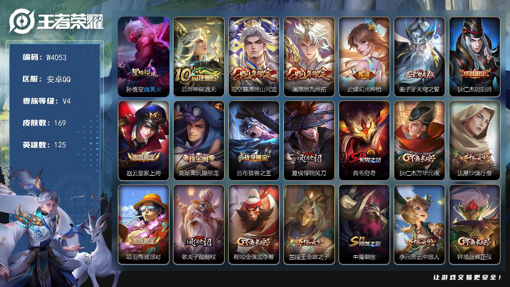 安卓QQ-4传说-169皮肤-125英雄-荣耀黄金