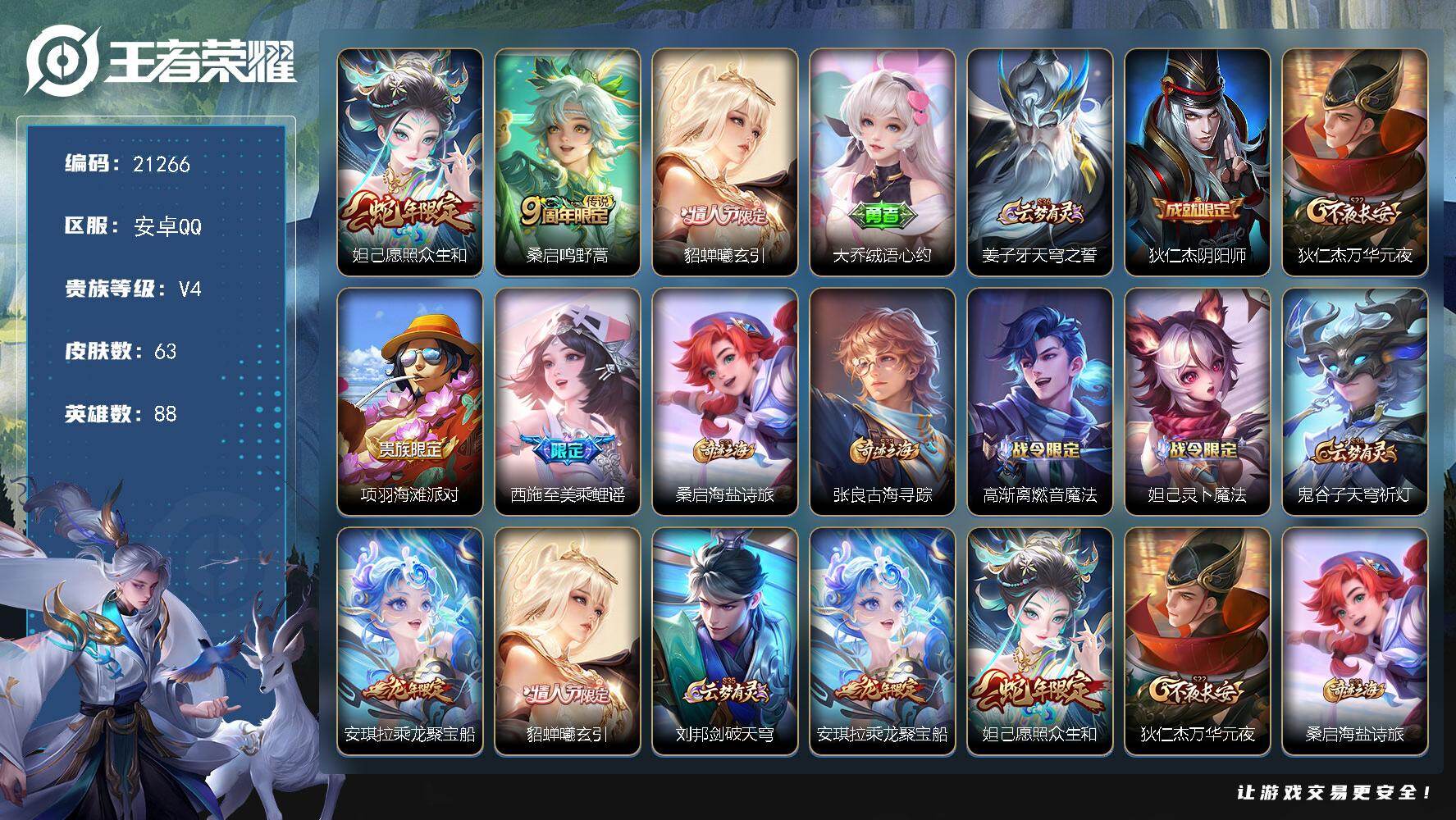 精品小号 安卓Q-V0-荣耀黄金II段位-100英雄-94皮肤-1典藏皮肤-3