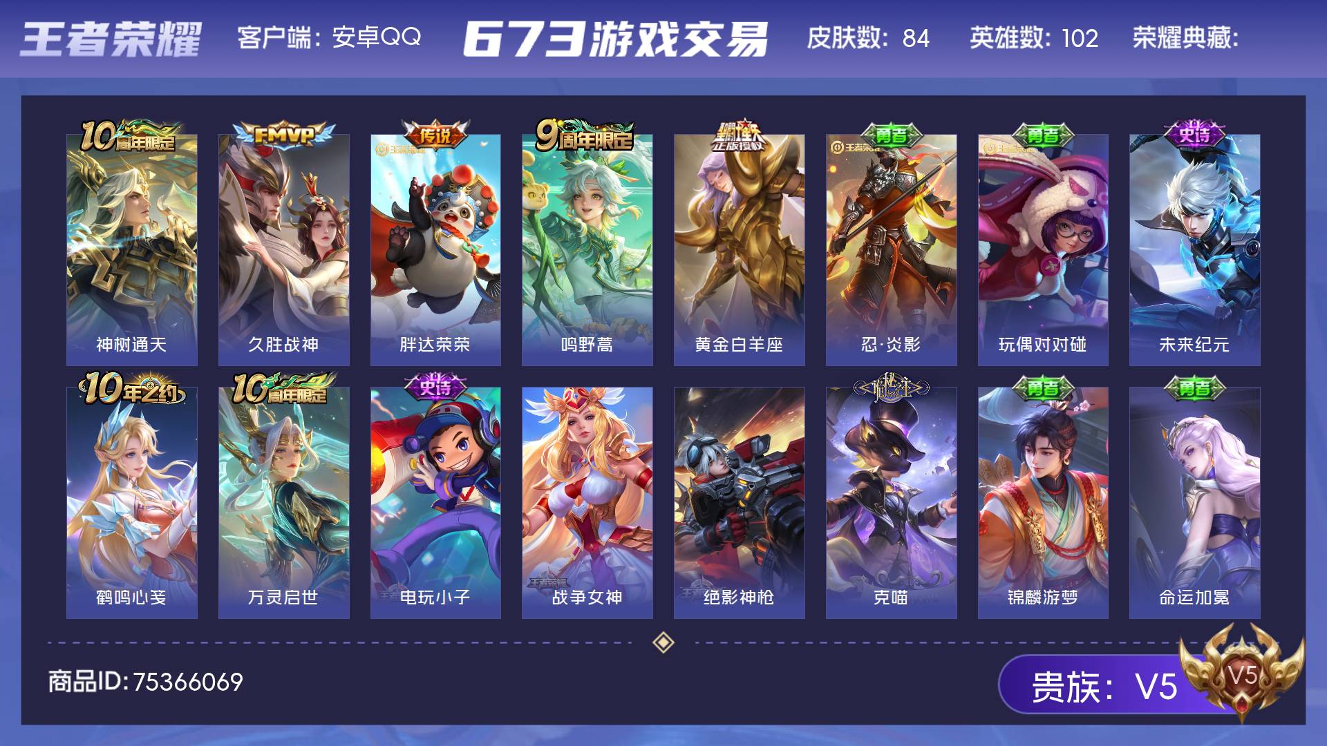 安卓QQ-1典藏-5传说-136皮肤-125英雄-至尊星耀-v四1荣耀5传说24史诗火影连体3高招S10高招A