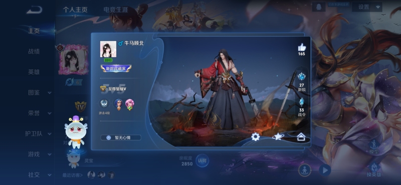 实名: 可修改 贵族等级: V4 英雄数: 123 皮肤数: 128 传说皮:
