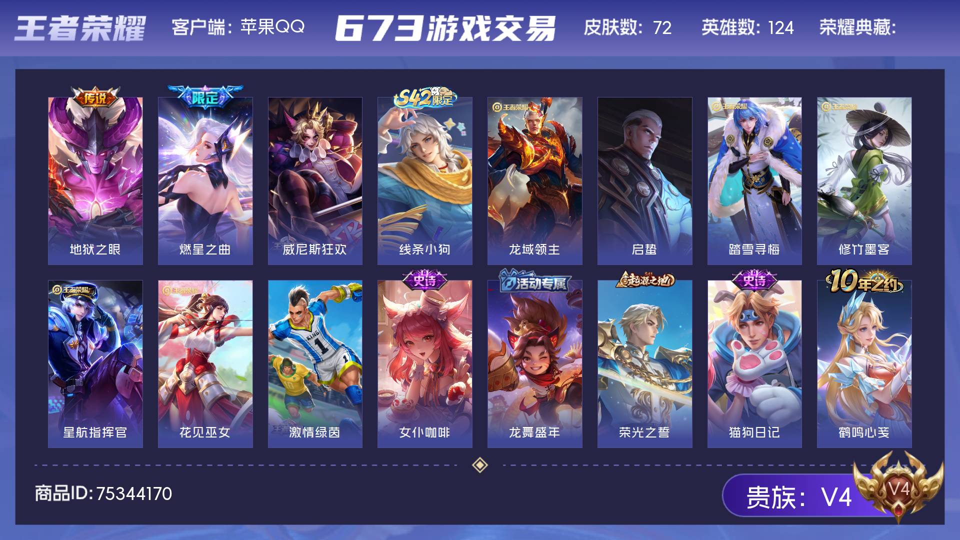 V4 皮肤72 英雄124 永恒钻石 星传说1 传说2 其他皮肤76