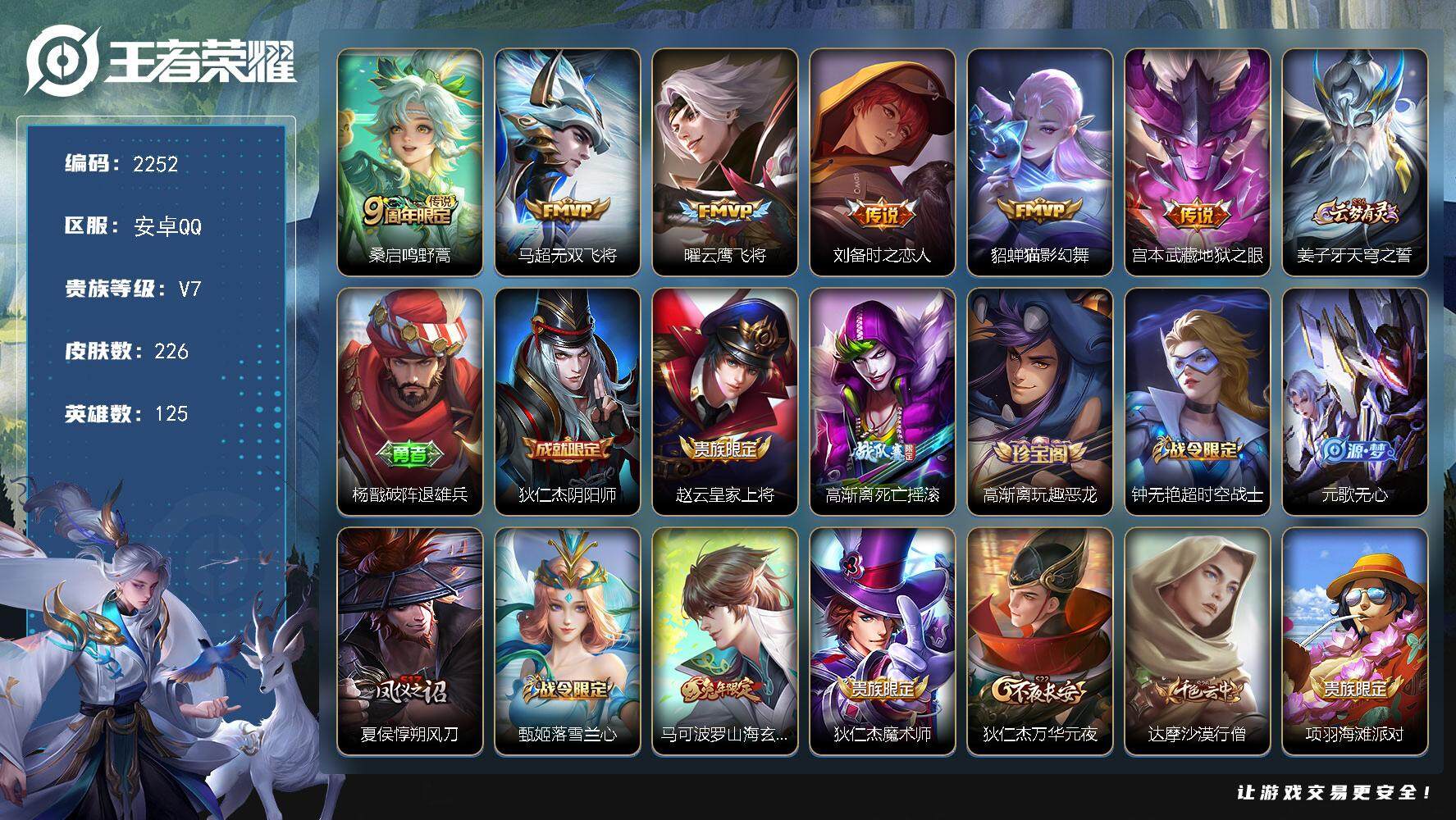 1576859王者荣耀账号安卓Q-V7-至尊星耀I段位-125英雄-226皮肤