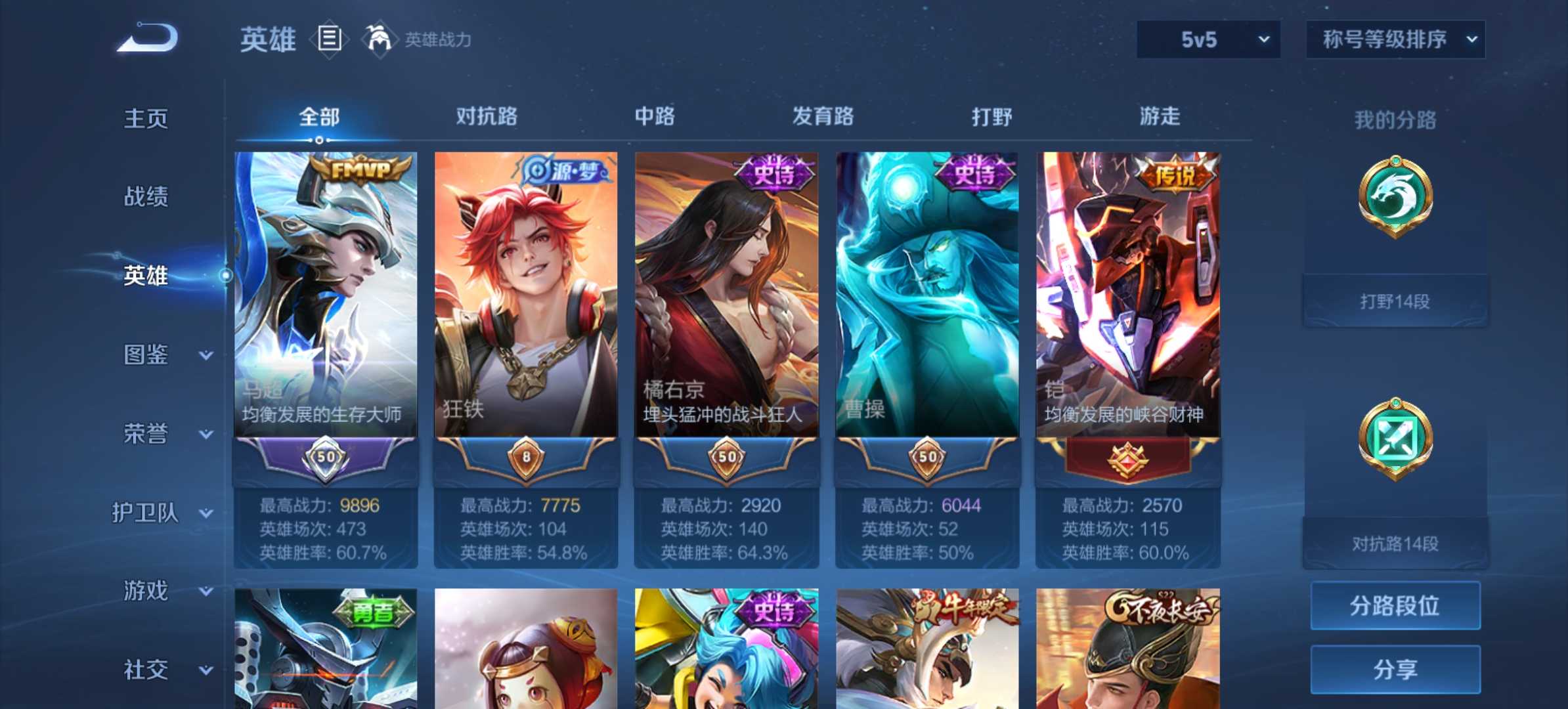 安卓Q-V2-至尊星耀V段位-124英雄-154皮肤-6传说-40史诗【英雄