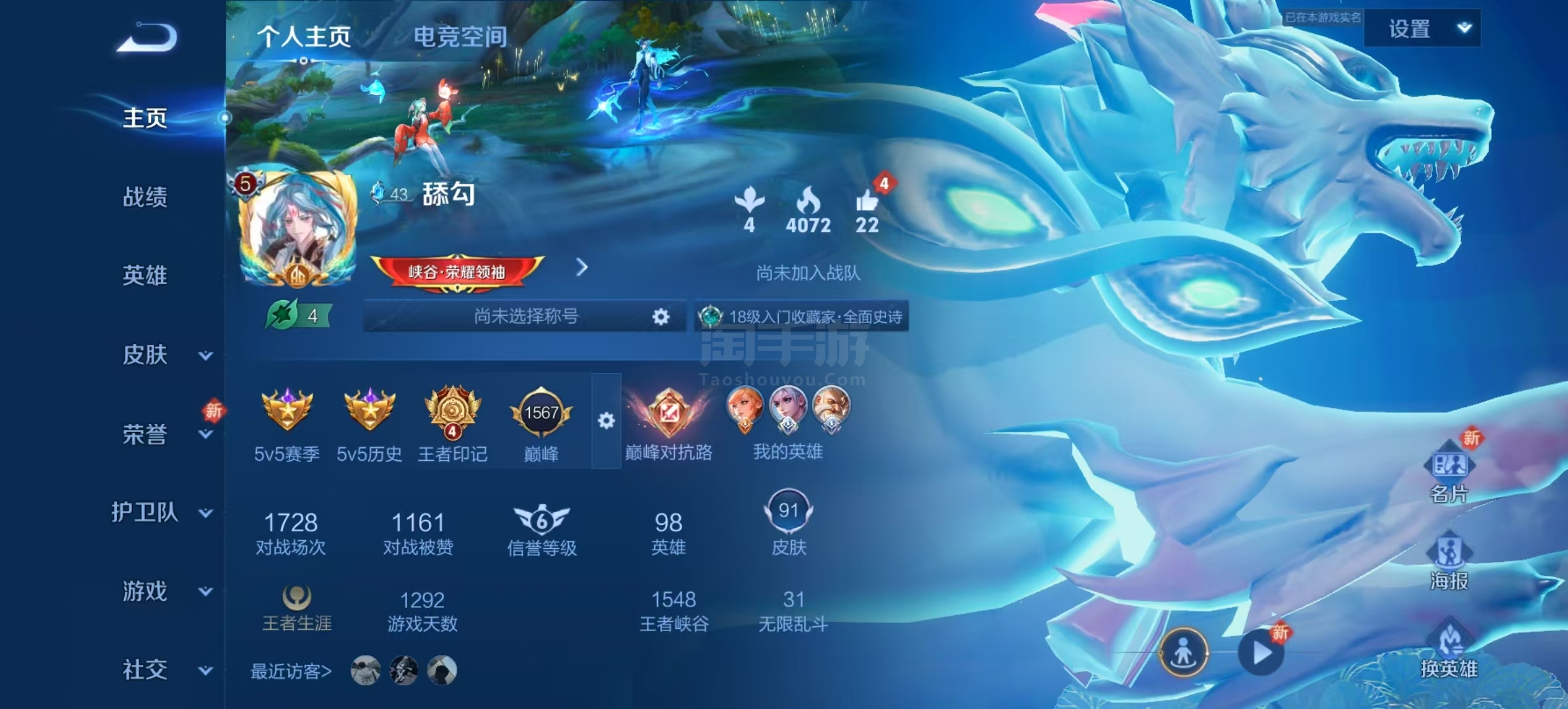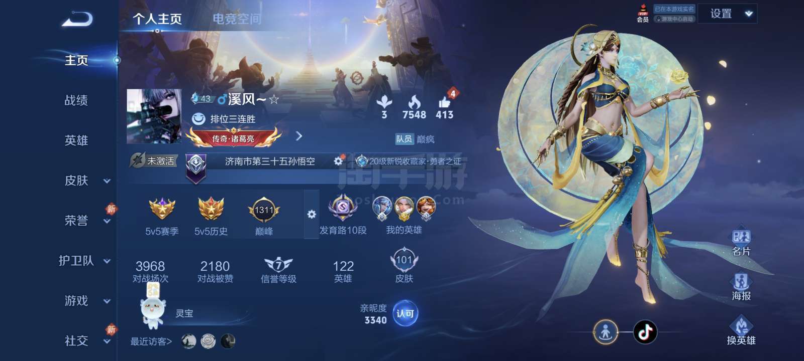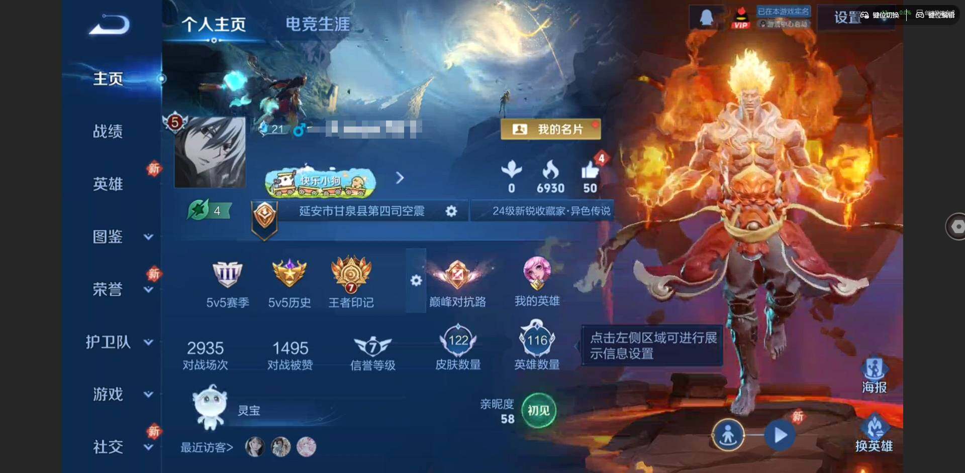 贵族等级: V5 英雄数: 116 皮肤数: 122 星传说: 幽冥之眼 传说