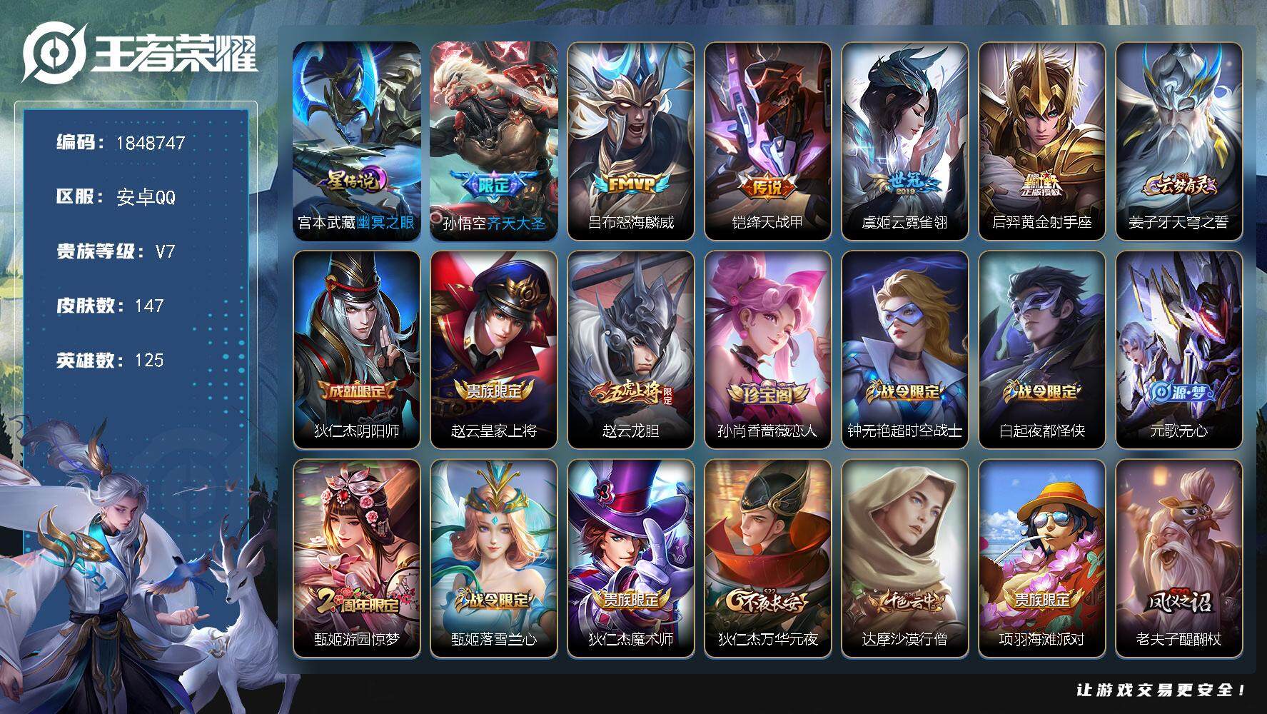1847611 安卓Q-V4-永恒钻石II段位-125英雄-152皮肤-3传说