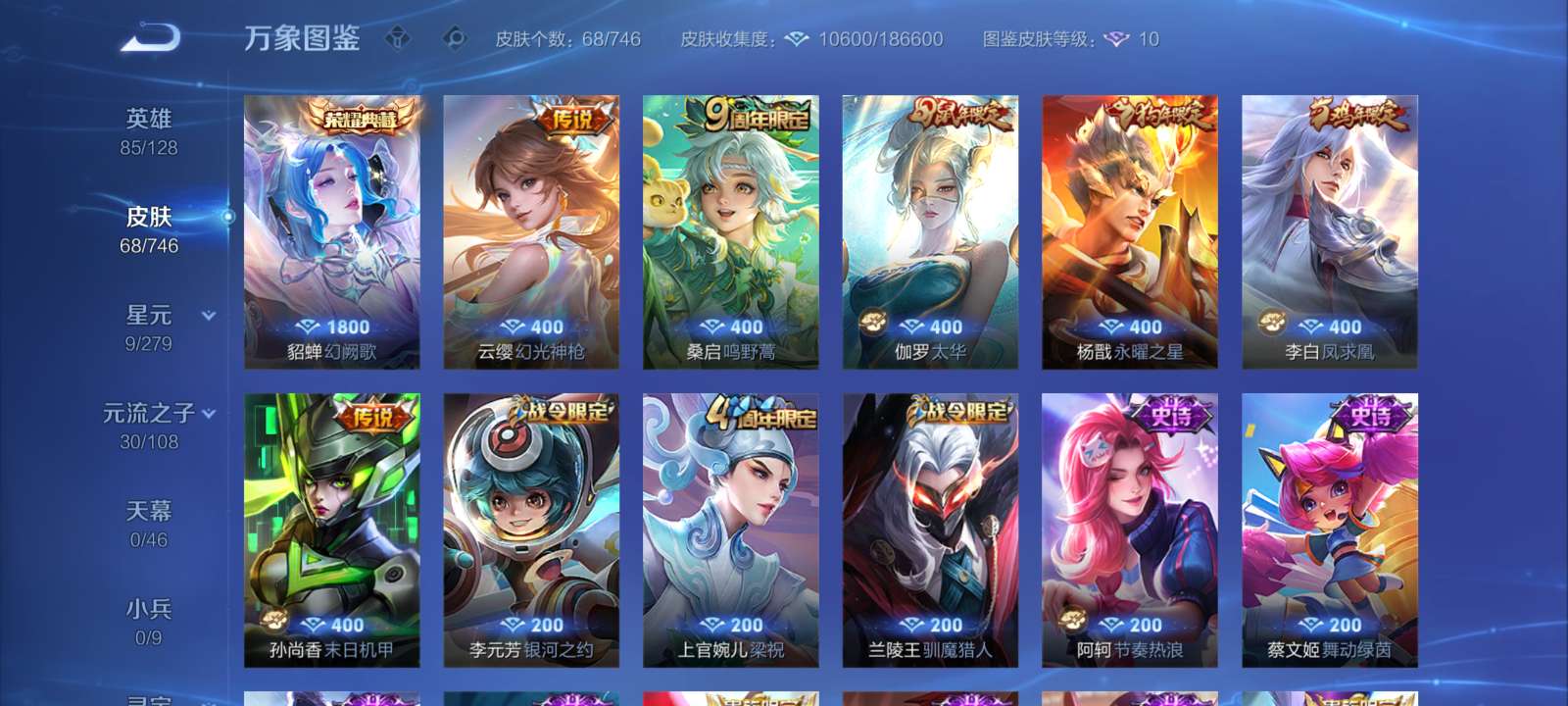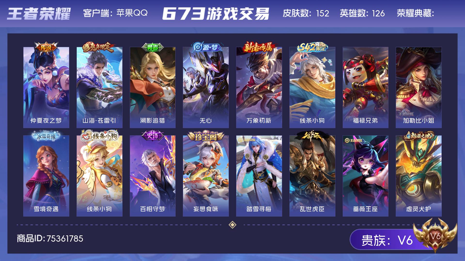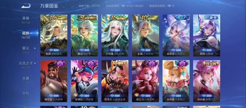V6 皮肤152 英雄126 永恒钻石 传说2 其他皮肤154