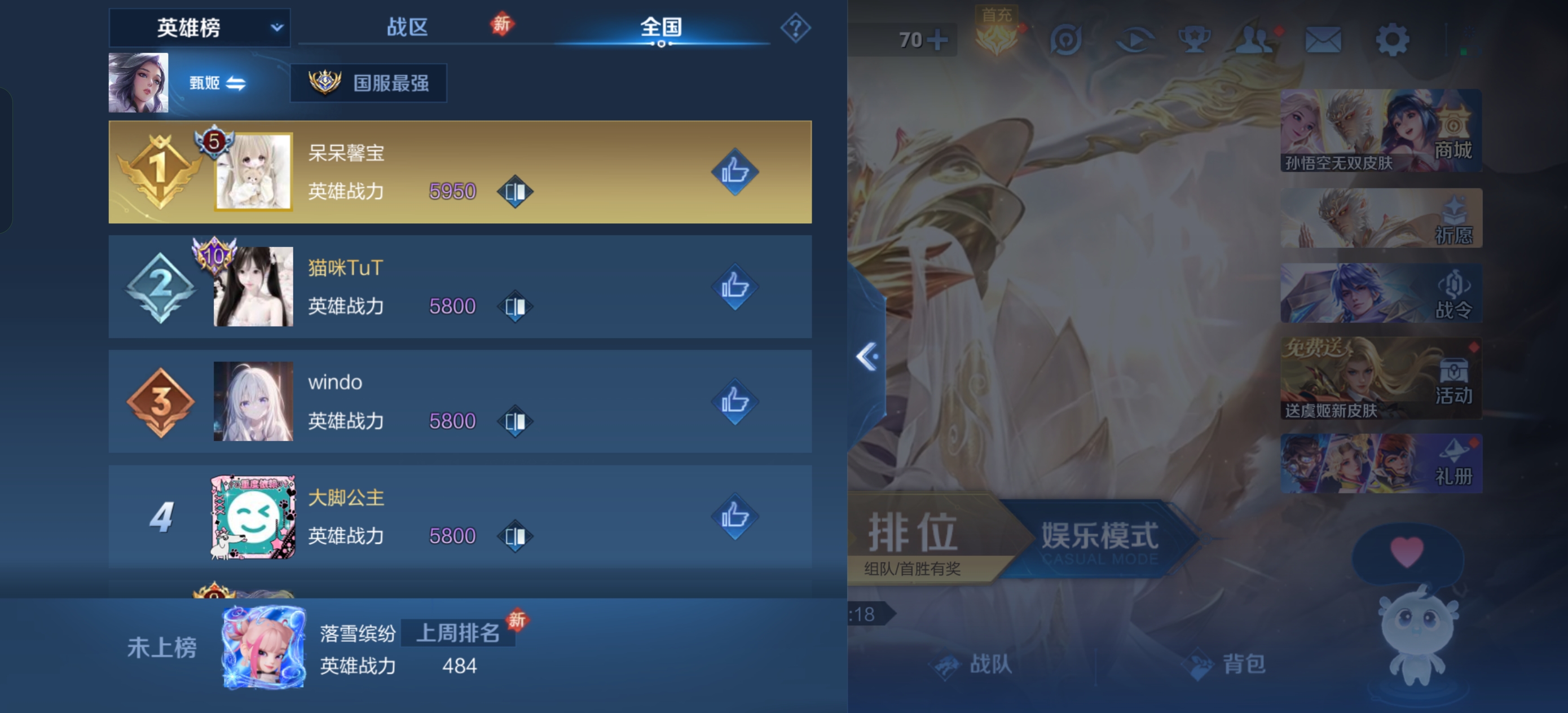 安卓微信-1传说-73皮肤-106英雄-至圣王者-五热门金标有想法dd