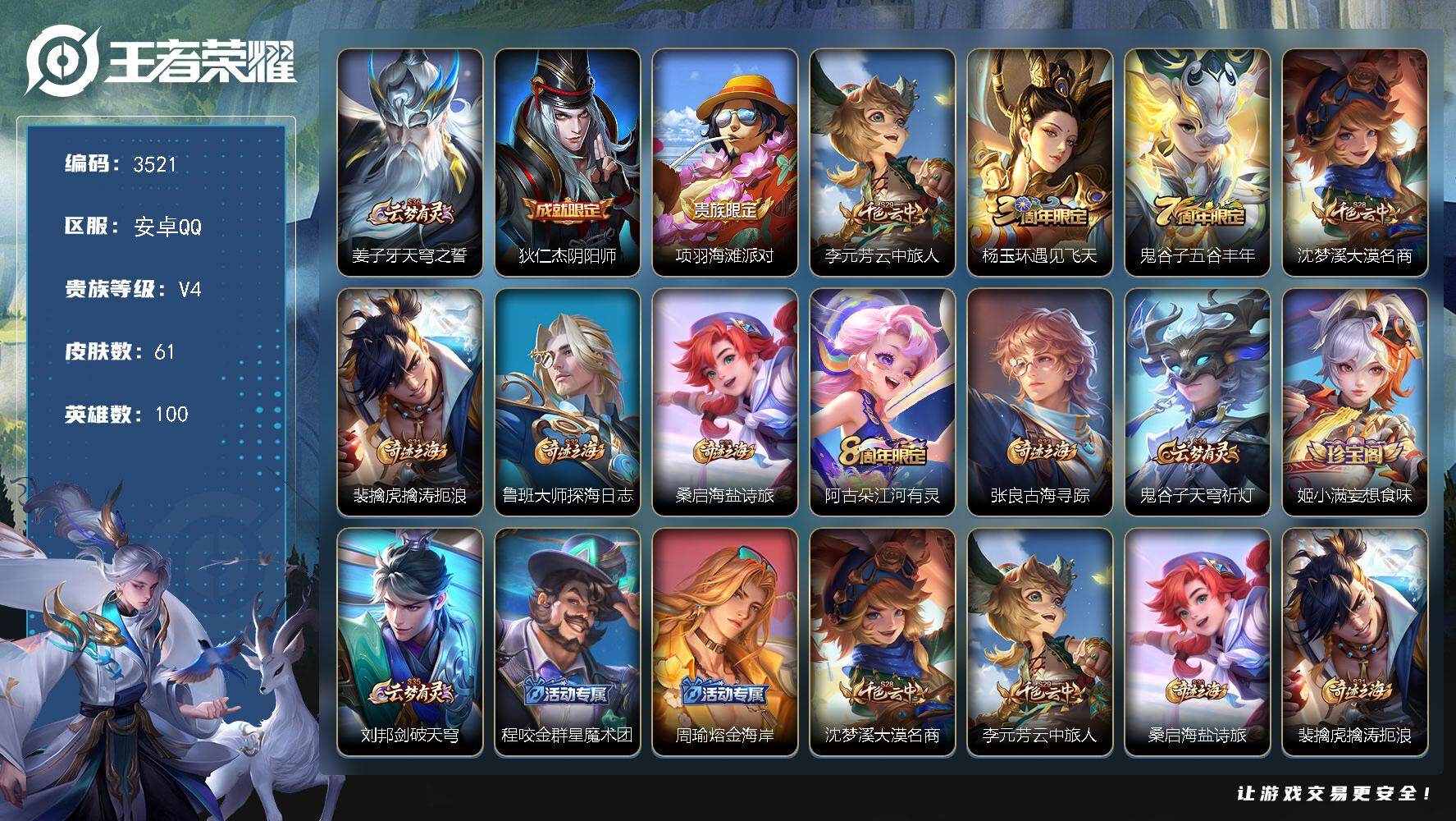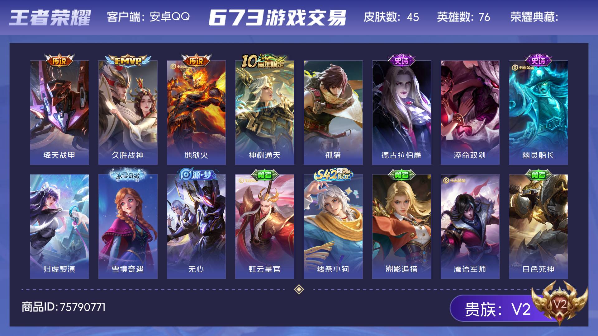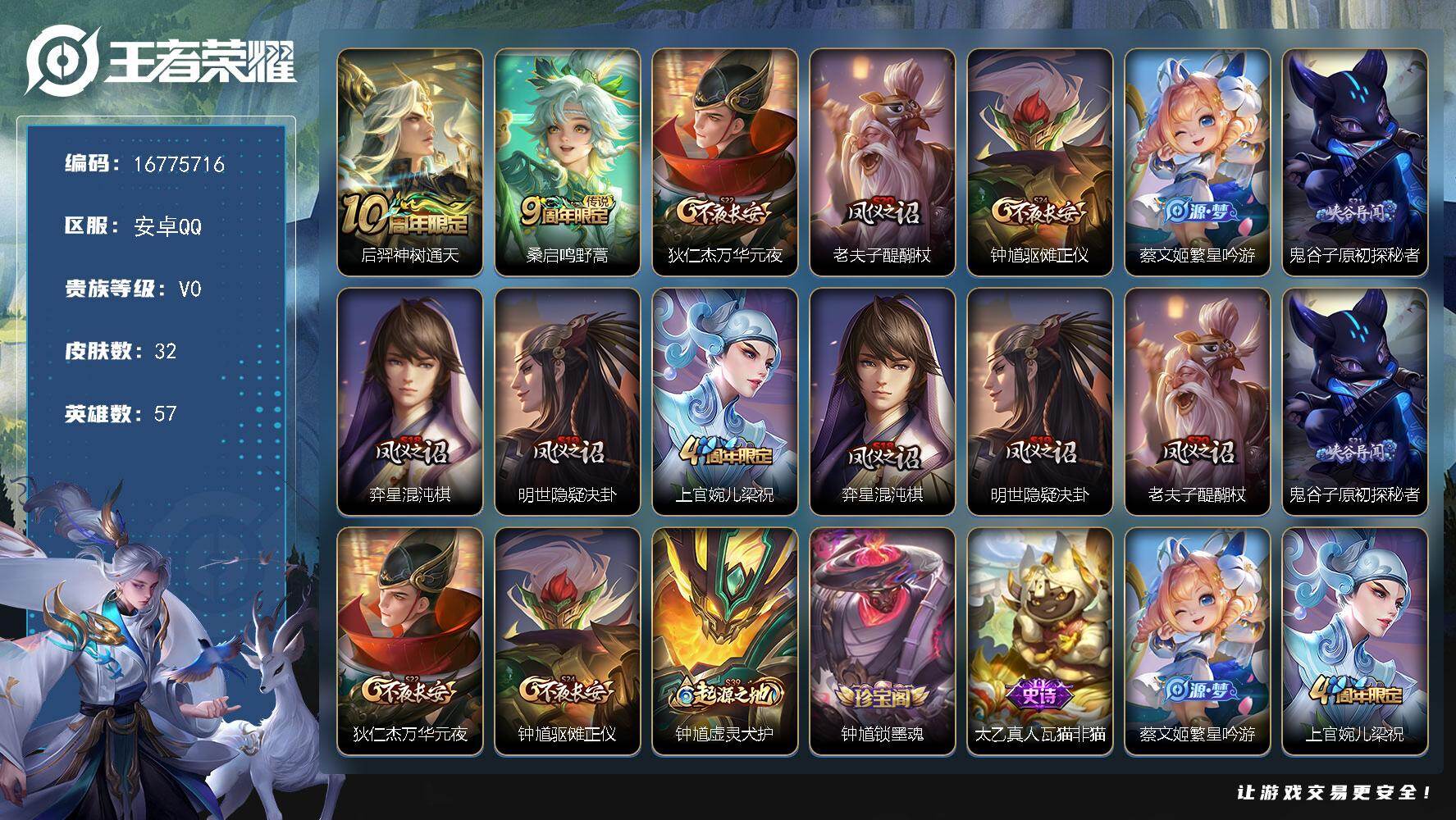 【16775716】安卓Q-V0-荣耀黄金III段位-57英雄-32皮肤-2传