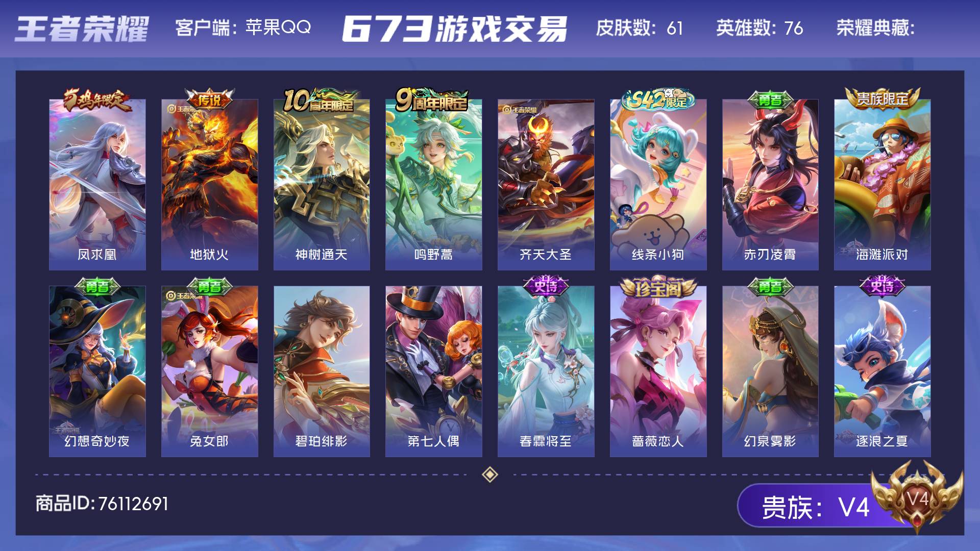 V4 皮肤61 英雄76 永恒钻石 传说5 其他皮肤62
