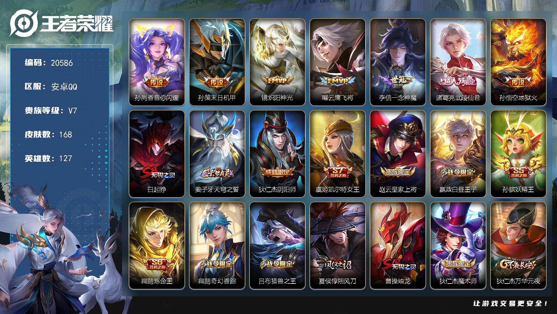 安卓QQ-1典藏-4传说-173皮肤-127英雄-尊贵铂金-