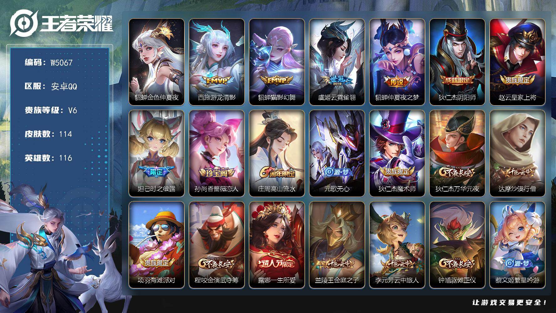 安卓QQ 皮肤216 英雄124 传说3 其他皮肤70 最强王者-
