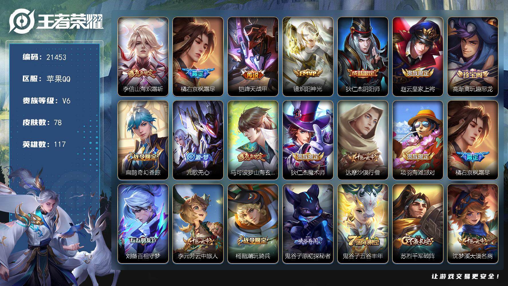 可二次-贵6-126英雄-153皮肤-3传说-33史诗-50限定