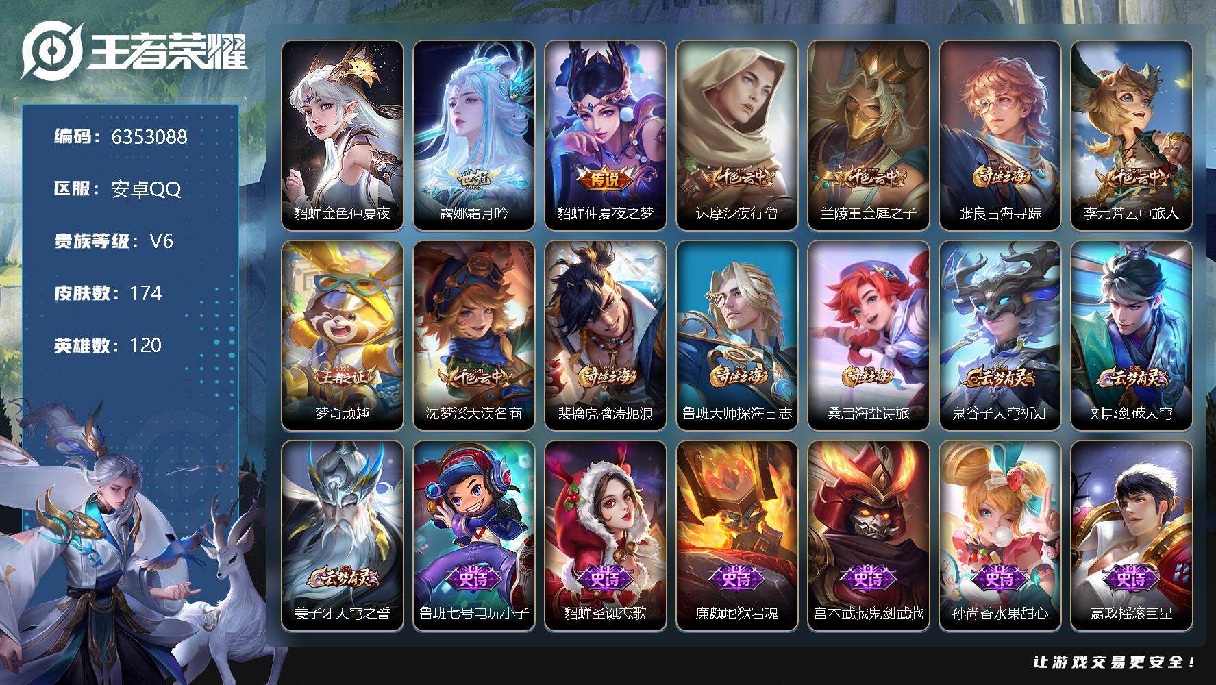 【W4164】安卓Q区-可二次-贵7-39英雄-32皮肤-10传说-5史诗-7