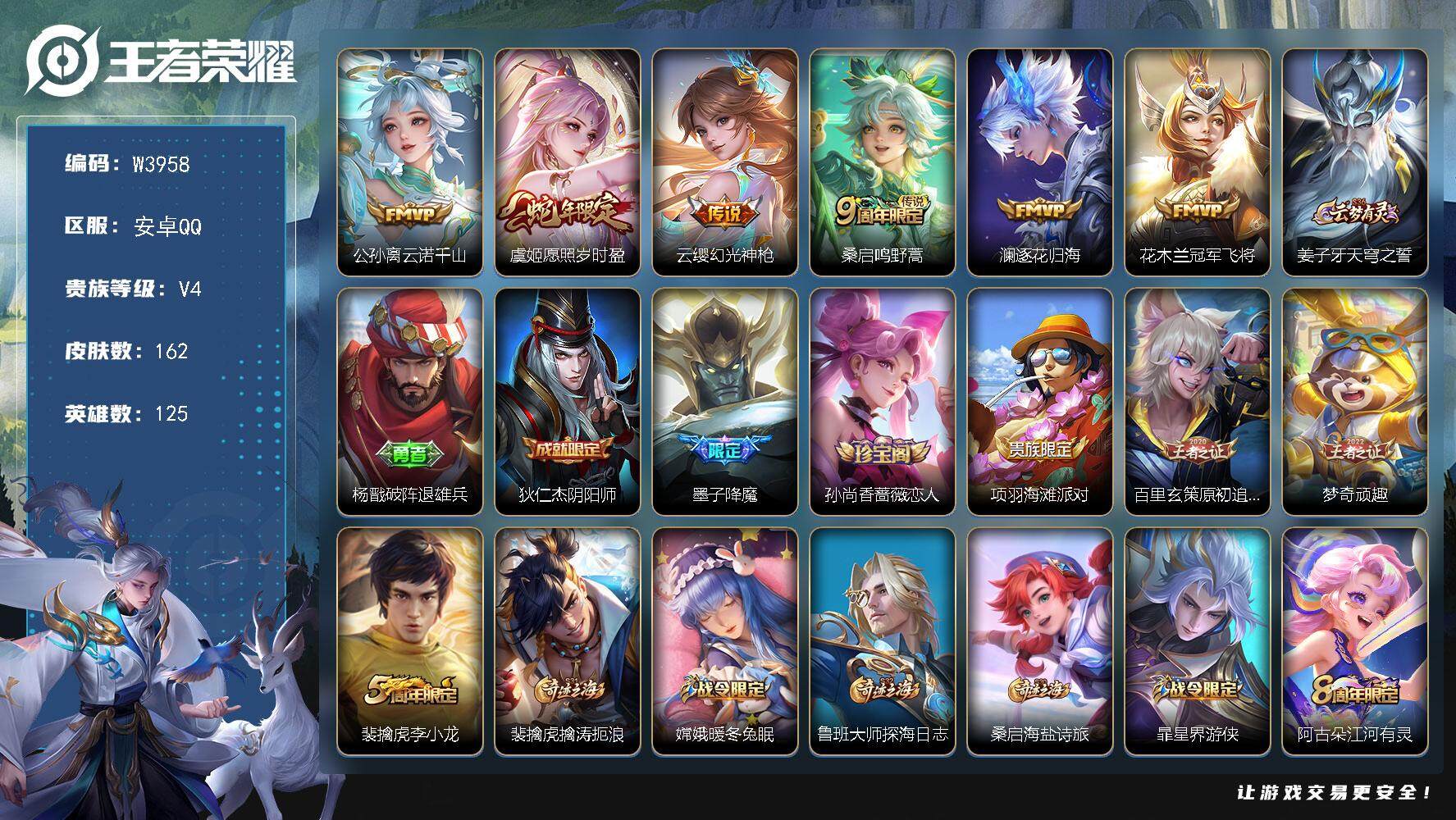 无二次-贵4-125英雄-162皮肤-6传说-40史诗-43限定-5按键